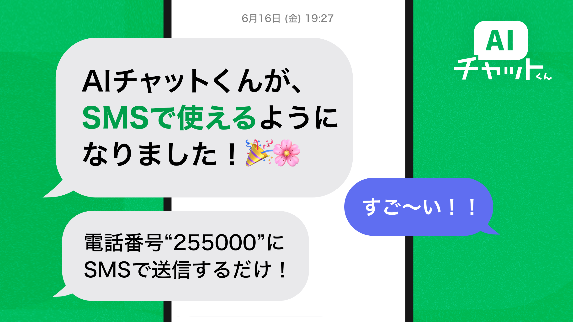 業界初!SMSで「AIチャットくん」利用可能に