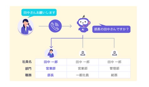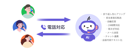 これまでの機能に加え、担当者氏名転送が可能になったことで、AIがコンシェルジュのように一次対応を行いますので、代表電話の無人対応を実現することができ、より多くの企業様でご利用いただけるサービスとなります。
