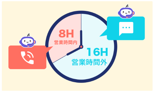 営業時間内は「代表電話代行窓口(担当者指名転送)シナリオ」で必要に応じてそのまま担当者へ取次ぎを行い、営業時間外は「折り返しシナリオ」で全ての電話を折り返し対応とすることができます。営業時間外でもヒアリングした用件は同様にメールやチャットで送信されるので、1件1件留守番電話を聞く必要が無く、翌営業日の対応時間の短縮に繋がります。