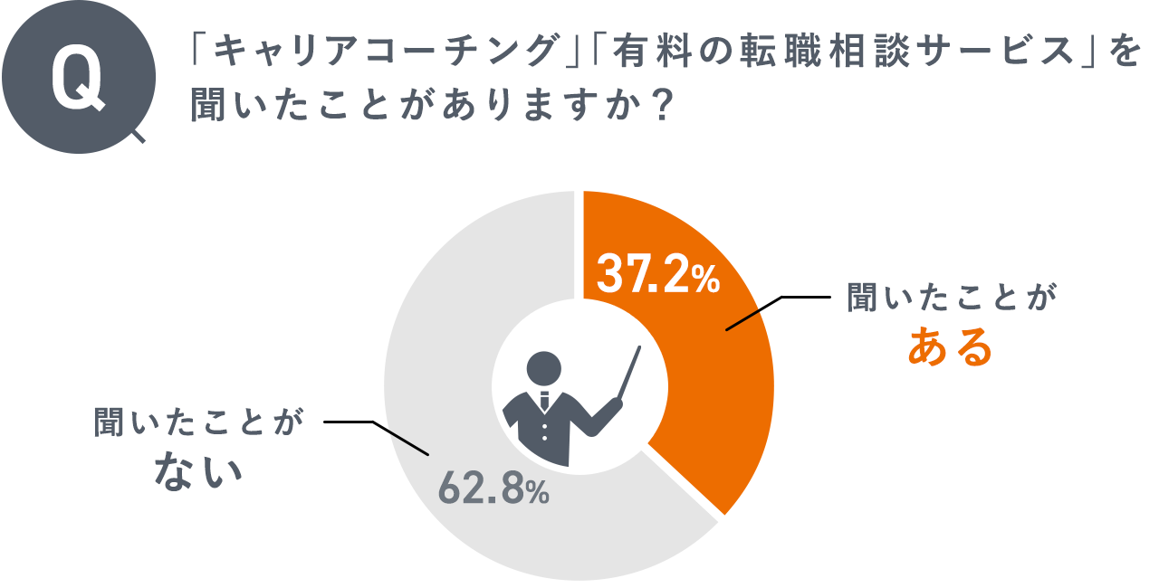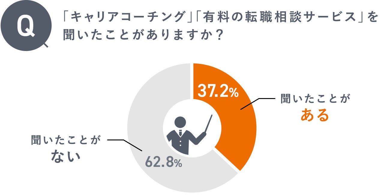 弊社が2022年2月に実施したインターネット調査によると、37%の人が「キャリアコーチング(もしくは有料の転職相談サービス)を知っている」と回答しました。