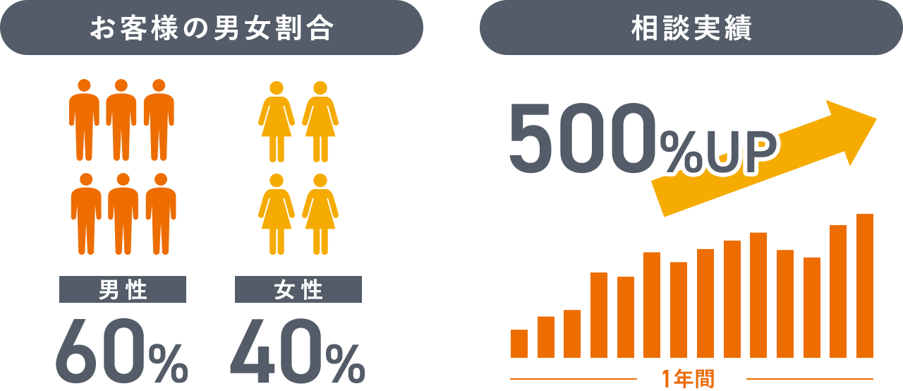 求人サイト・転職エージェント・ダイレクトリクルーティングに次ぐ「第4の転職サービス」として注目され、1年間で月間相談者数が500%まで増加しています。