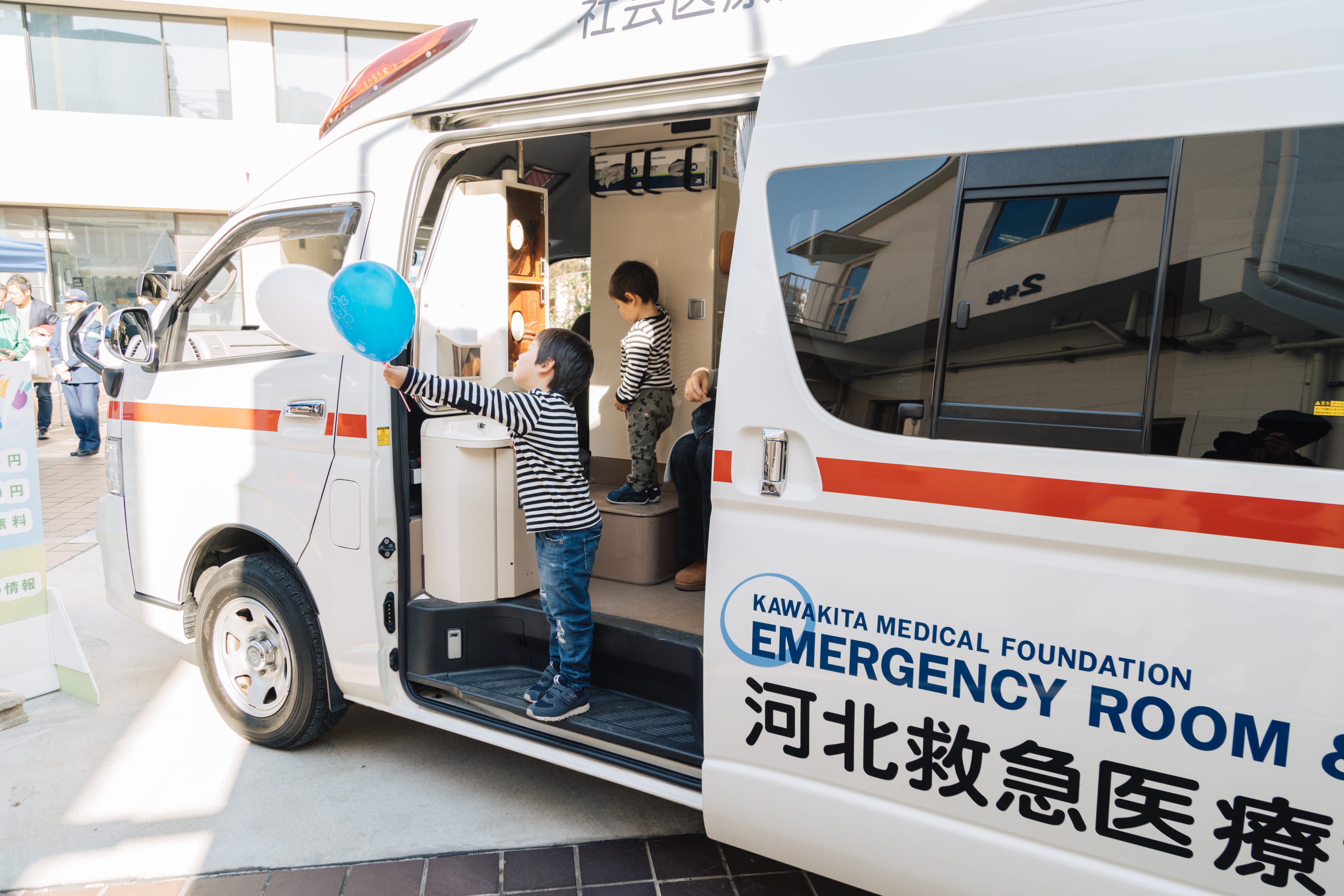 - 緊急自動車の展示(河北救急車・白バイ・ミニパトカー)
