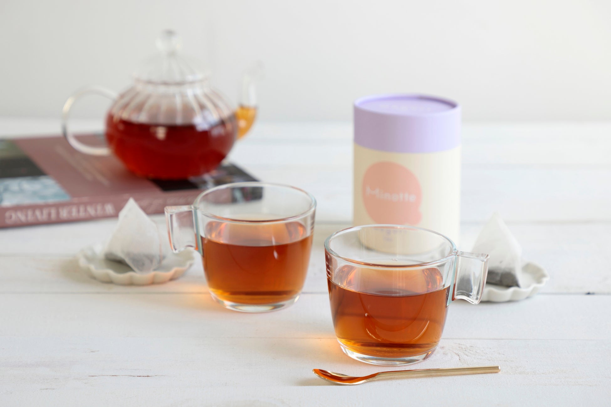 自身も不妊・出産での悩みを経験したリボン食品の代表取締役社長を務める筏の、毎日を忙しく過ごし、同じ悩みを持つ女性を「食」を通してサポートしたいという想いから生まれたフードブランド。妊活や産前産後のホルモンバランスの崩れといった女性特有のお悩みは、ひとりで抱え込みがち。自分ばかりが頑張っている気がして、何となく孤独を感じ、つらい思いをすることも。Minotteはお悩みにひとりで取り組むのではなく、パートナーやご家族と一緒に楽しい食事をしながら、なおかつ必要な栄養素が摂れれば、より健やかな生活を送っていただけるのではと考えている。販売中のブレッド、スープと合わせて飲めるMinotte Tea巡を発売。