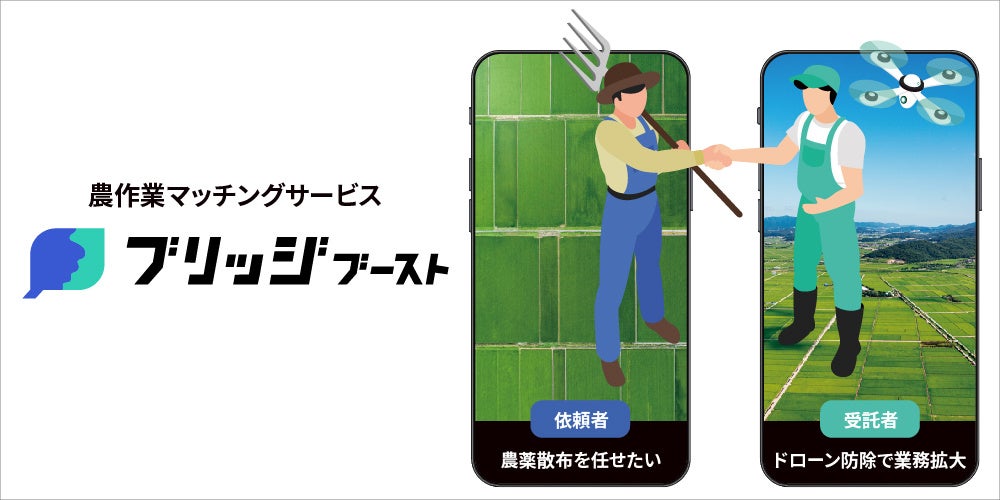 農作業を「依頼する人」と「受託する人」をつなぐ農作業マッチングサービス「ブリッジブースト」は、オンライン上で、マッチング、農作業の依頼・受託、スケジュール・作業管理、決済まで、一元的に提供します。担い手不足の課題解決、農作業の外部委託へのニーズに対応するために誕生したサービスです。