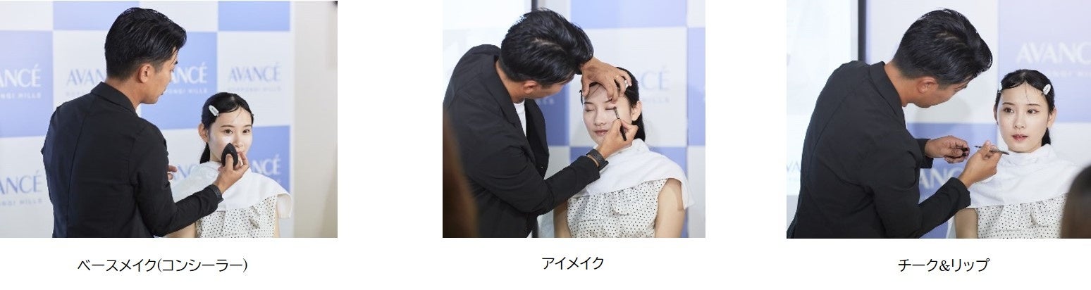 ヘアメイクアップアーティストによる、ツヤ肌をテーマにアヴァンセ商品を使用した2024年秋冬ベースメイク講座。アヴァンセ公式アンバサダー笠野咲藍さんも登場!今回はメイク講座のモデルとしても活躍してくれました。笠野さんの透き通るような肌がベースメイクを引き立てていました。