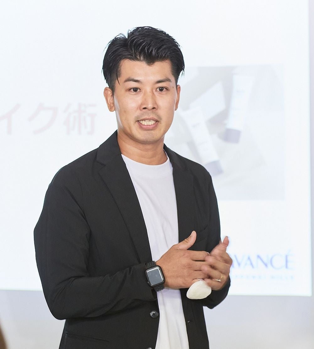 「アヴァンセは日本にハリウッドのメイク技術を広め、マスカラを初めて発売した来年100周年のハリウッド化粧品グループから1996年に誕生しました。日本で初めてまつげ美容液を発売したパイオニアメーカーです。以来、目元のアイテムを中心に「メイクをしながらとことんケア」をコンセプトに展開しています。デジールは「憧れ」の意味を持つフランス語、「メイク初心者でも簡単に憧れに近づける」をコンセプトに、昨年アヴァンセの新ブランドとして誕生しました。本日はアヴァンセのメイクでご自身の「憧れ」に少しでも近づくお手伝いが出来たらと願っています。」