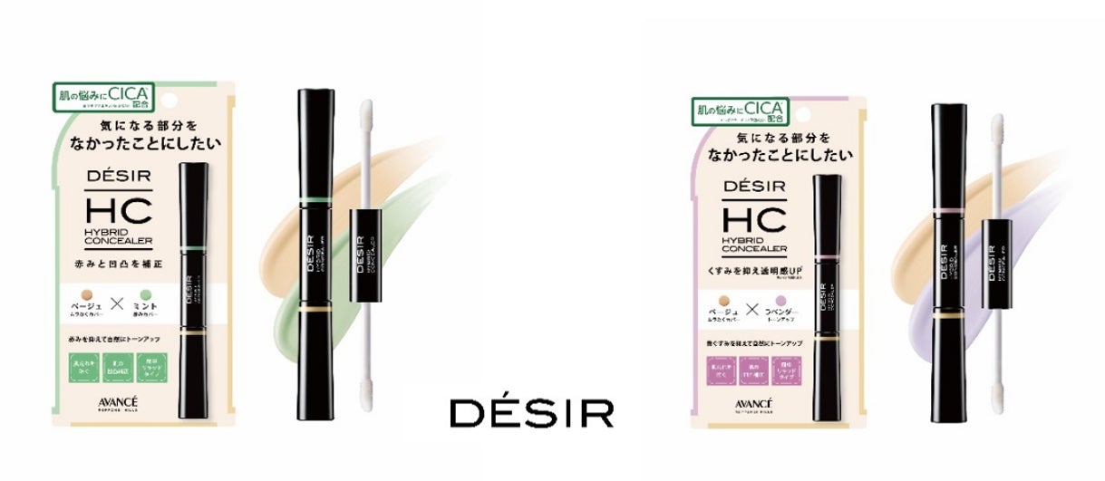 フランス語で「願望・憧れ」の意味を持つDÉSIR(デジール)は、メイク初心者にも簡単に使いやすく多機能で完成度が高い、をコンセプトに2023年9月にアヴァンセの新ブランドとして誕生しました。BPクリームは、簡単に透明感やツヤ感、ふんわり感を実現出来るBBクリームとプライマーが1本になった高機能商品です。今回BPクリームに続いて、手軽さがウリで新感覚の、トーンアップや赤みカバーに着目したハイブリッドコンシーラーが登場しました。