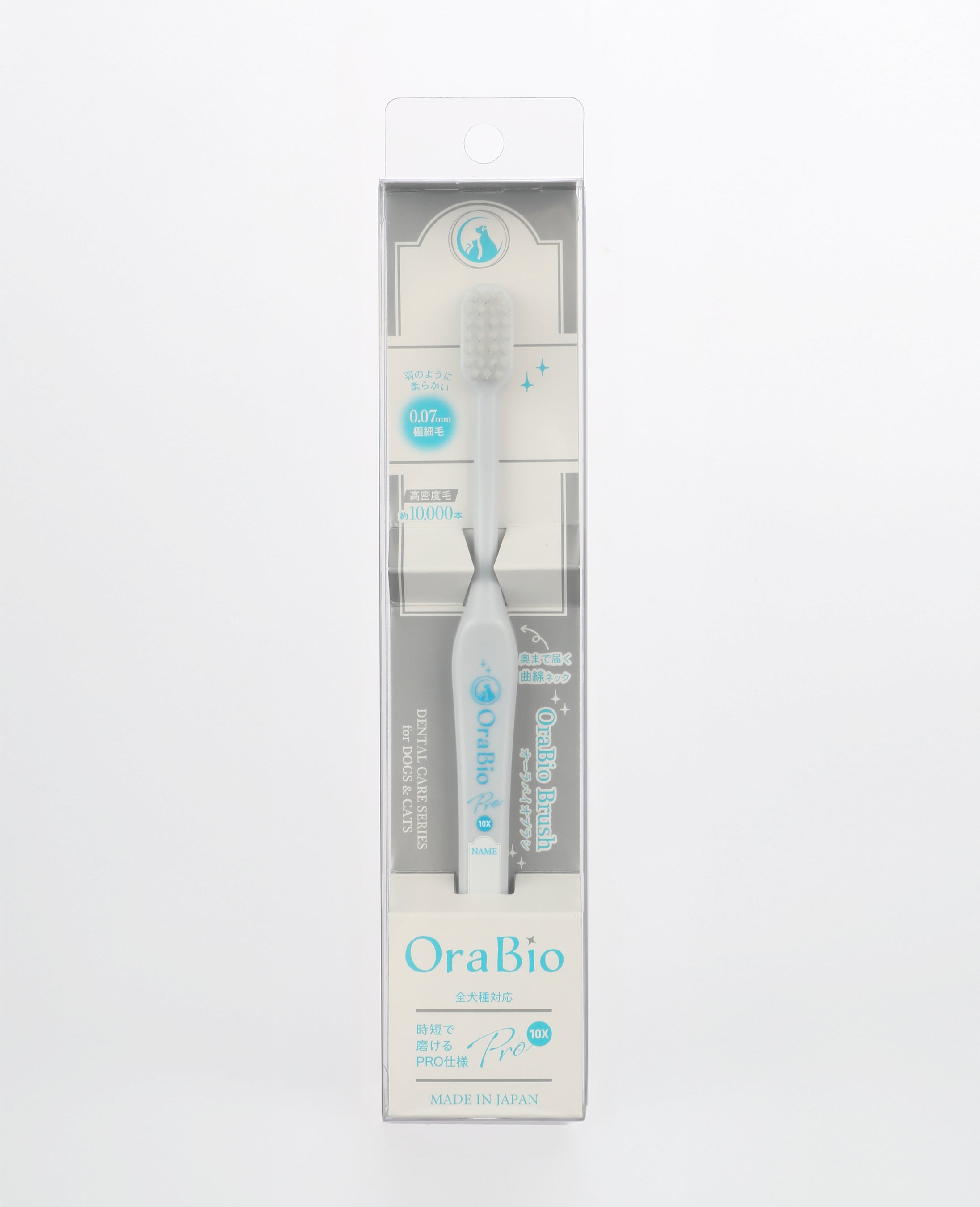 そこで、日々の歯みがきが習慣化した飼い主・サロン向けに、“次の段階”の歯ブラシとして 「OraBio Brush PRO 10X」 を開発しました。歯みがきに慣れてきた愛犬の“次のステップ”として使える、より高密度で繊細な磨き心地が特徴です。