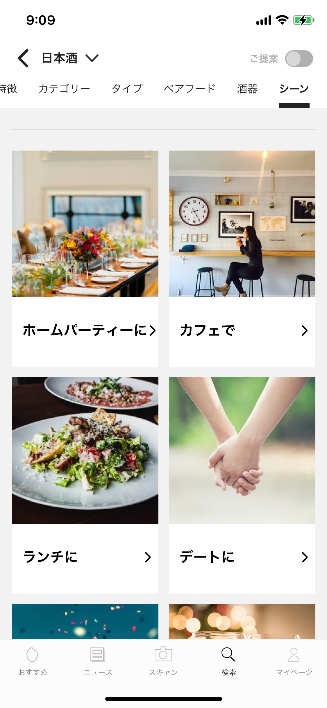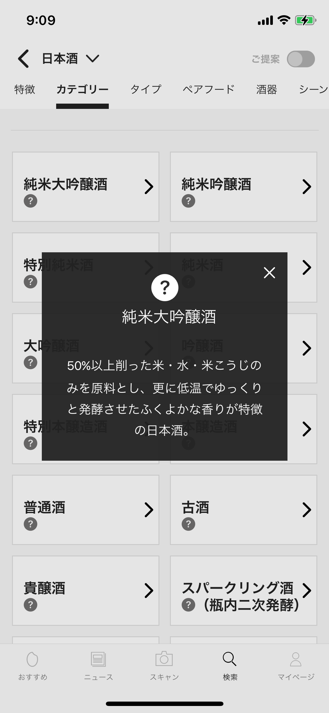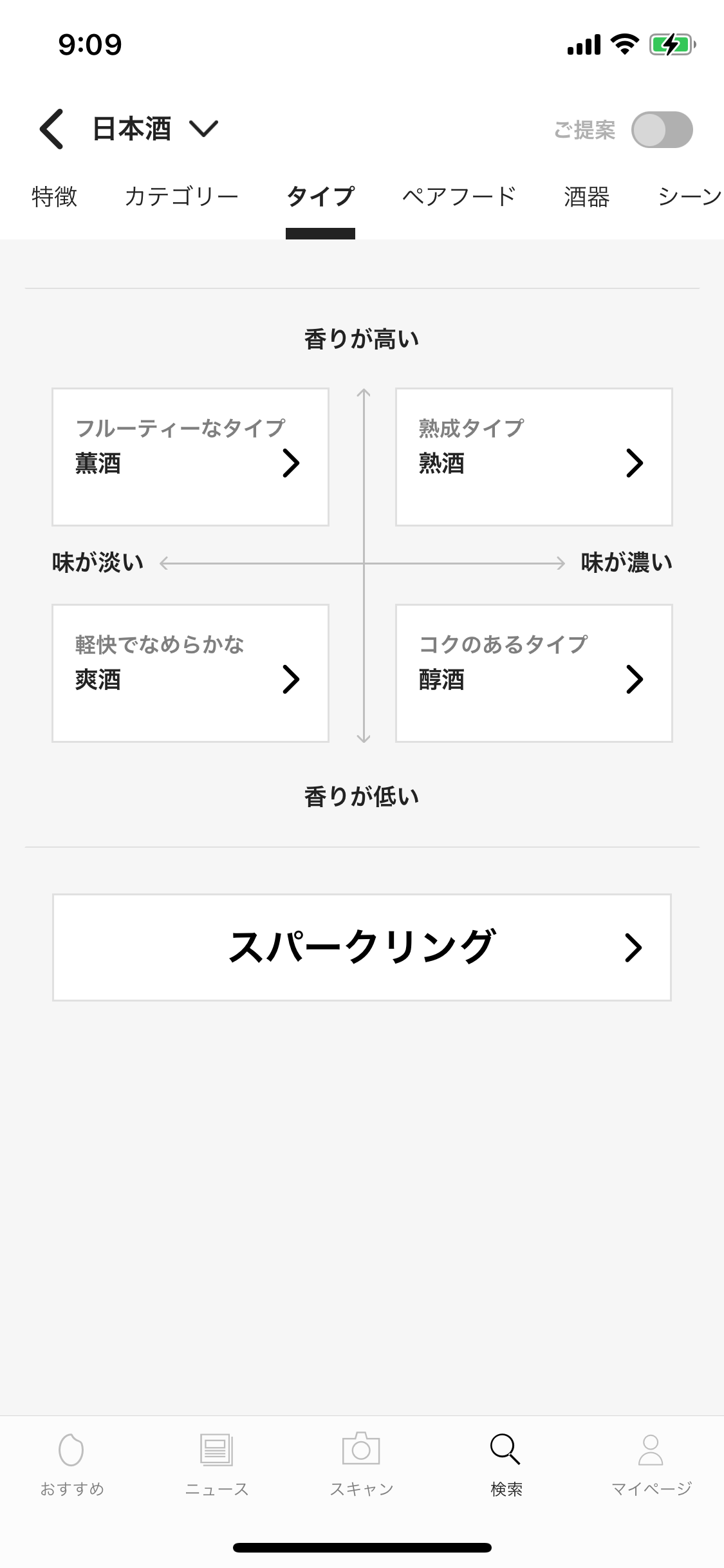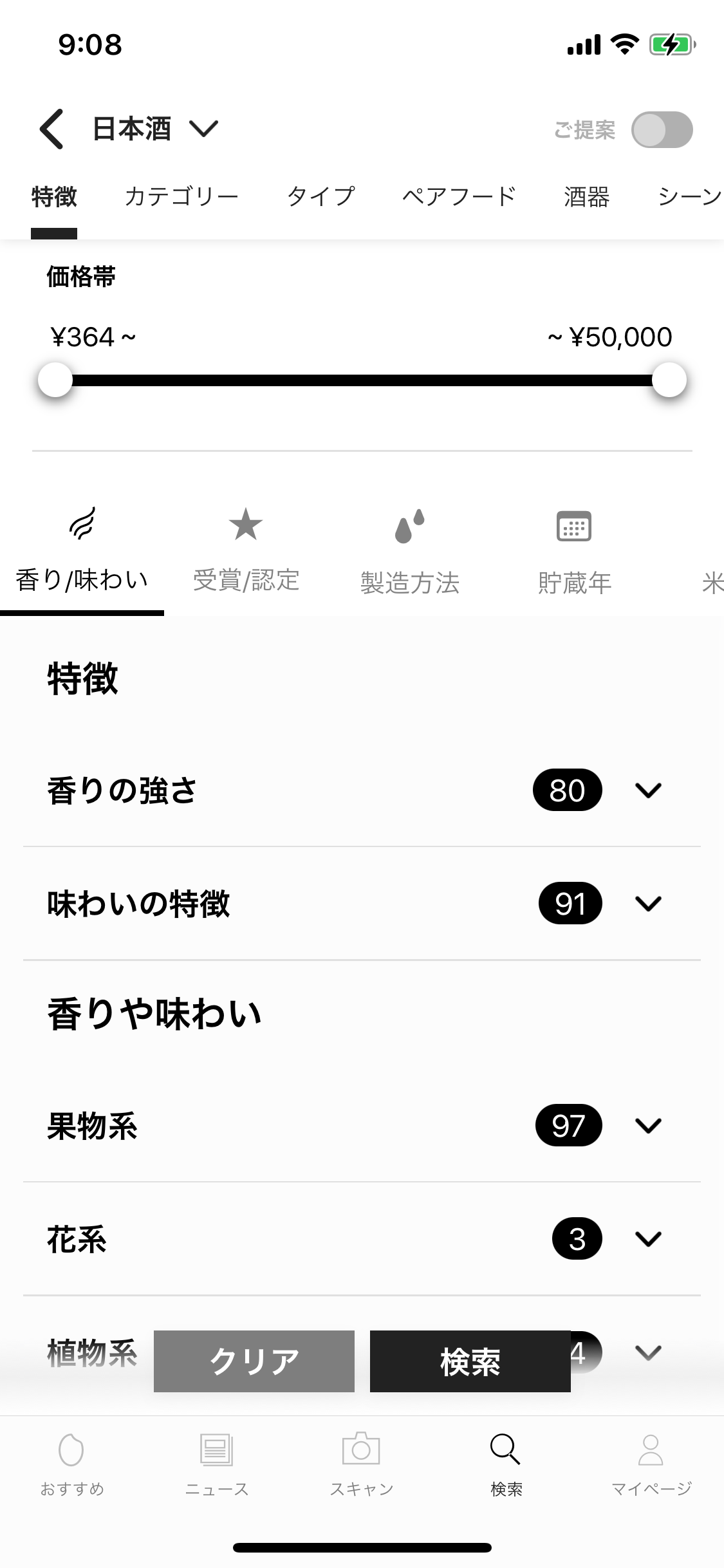 お酒の「香り」「味わい」「受賞歴」「生産地」といったビギナーレベルから、「カテゴリー」「タイプ」「製造方法」「米品種」といった上級レベルまで、お酒の特徴について縦横に絞り込んで検索することができます。自分好みの新しいお酒とたくさん出会えます。
