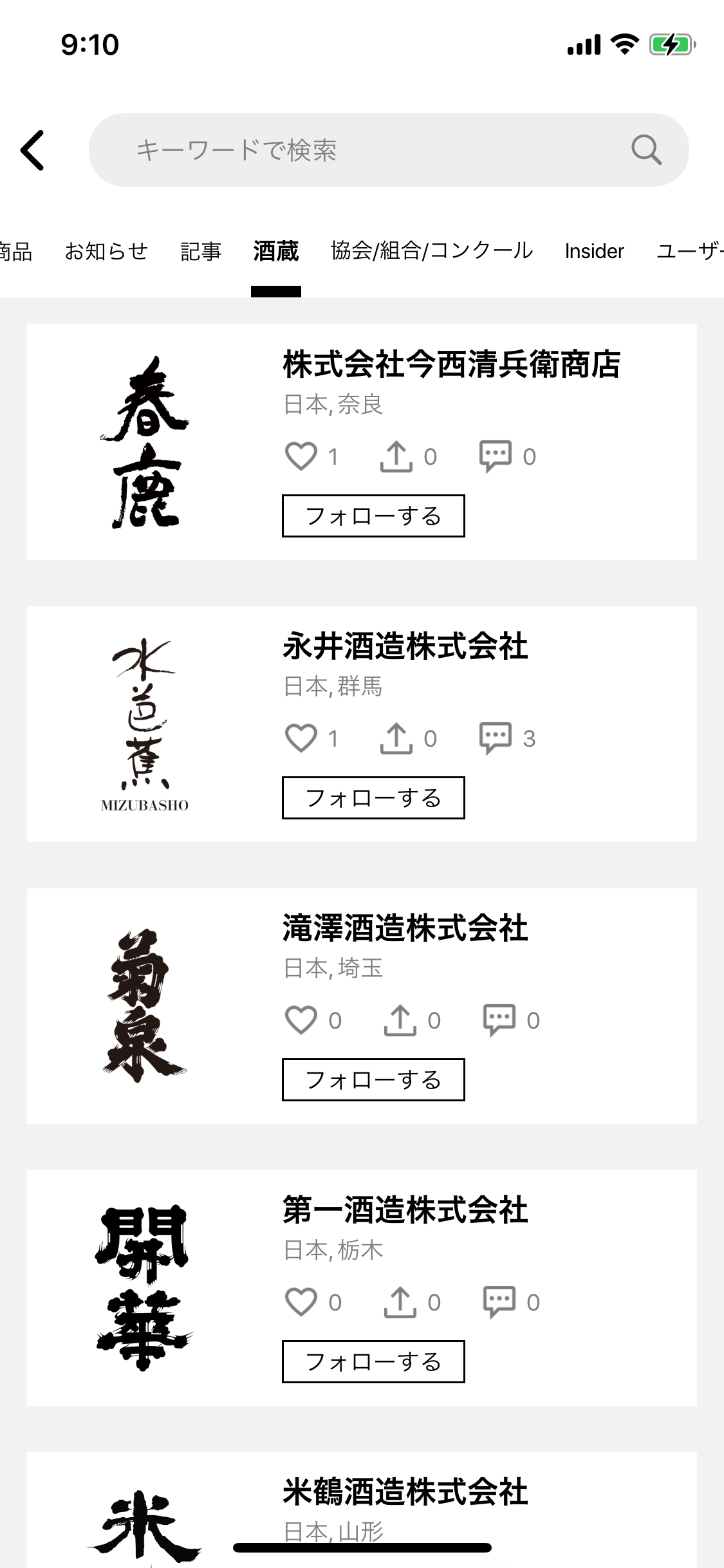 気になる酒造メーカーやライターのフォローや、「SNS投稿」「お知らせ」「記事」の「いいね」や「シェア」により、蔵元やユーザー間でのコミュニケーションが可能になります。