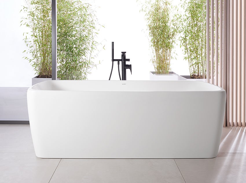 洗面ボウルの形状を踏襲したバスタブは、アクリル製のビルトイン型バスタブと、最新のミネラルキャスト素材DuroCast Plus(デュロキャストプラス)を使用した、ベルベットのように滑らかな肌触りのフリースタンディングのバスタブを展開します。