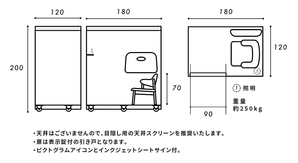 重量はおよそ250kg。OHACOと同様の重さで、キャスター付きだから設置位置を変えたいときの移動もかんたん。仮設授乳室にもおすすめです。