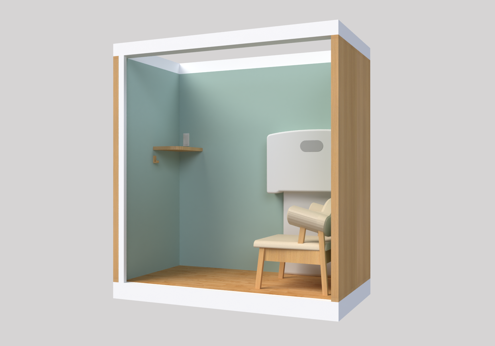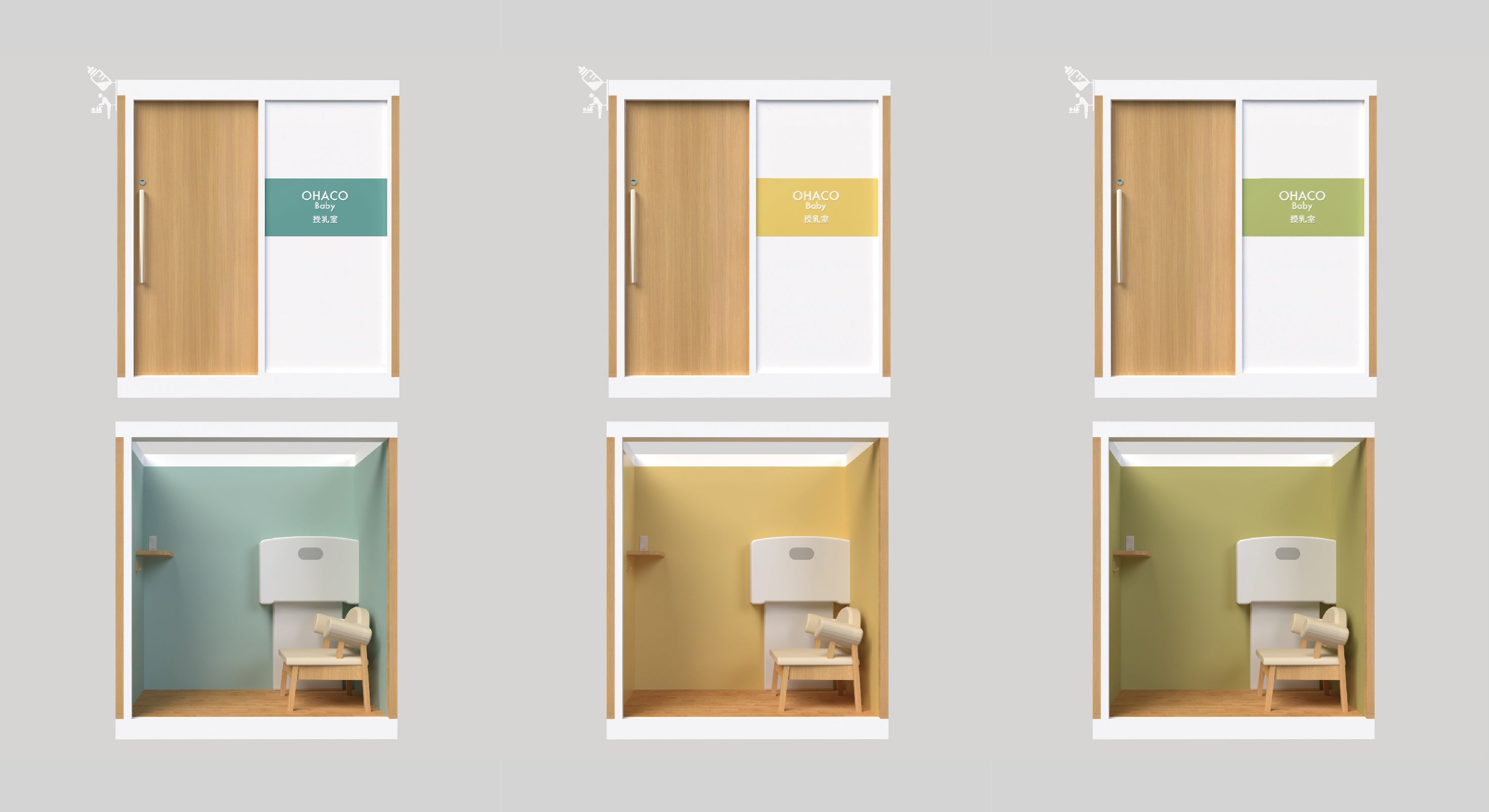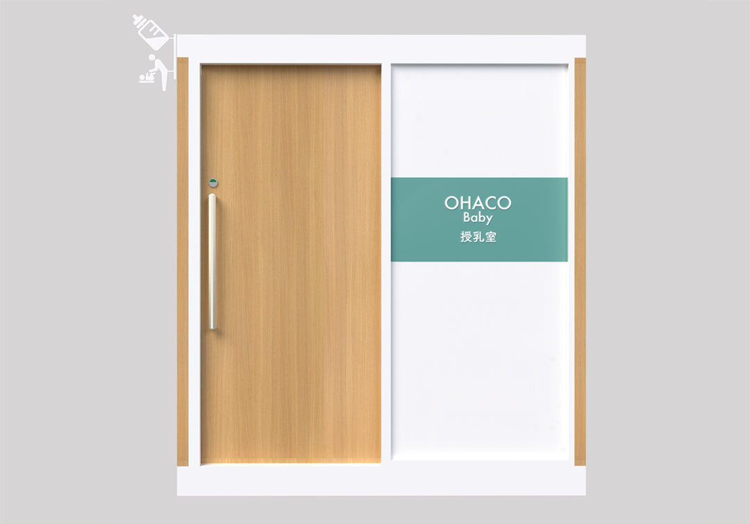 展示会で「OHACO」をご覧になられたお客様よりいただいた「授乳室として使えるものはありませんか?」という声に応えて弊社のデザインチームが企画した、設置型ベビーケアルーム「OHACO Baby」。