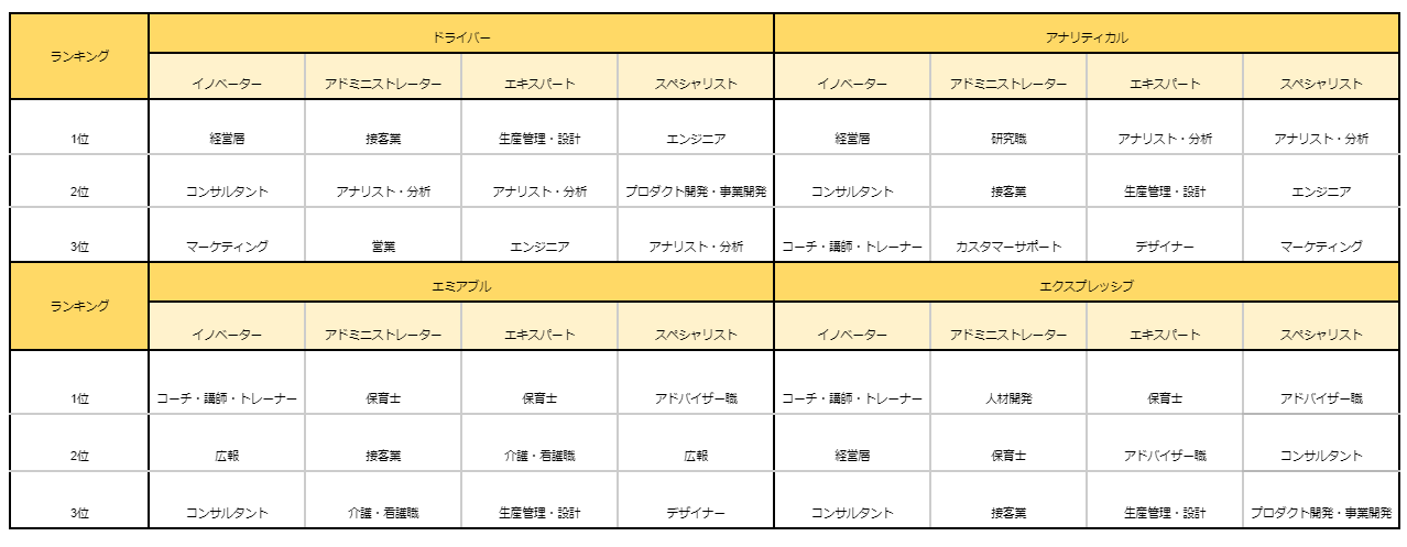 - イノベーター:新規事業向き・組織成長を重視