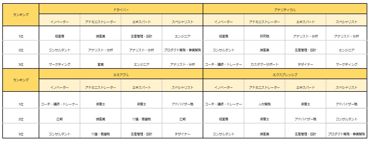 - 感情表現を出す人材は、人の成長や育成に関わる職種に平均対比約2倍の割合で就労している
