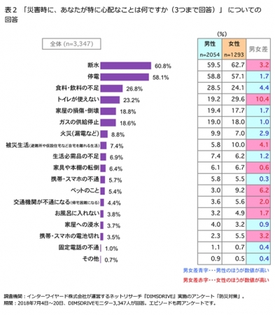 <防災対策に関する意識調査>災害が起きたら…女性は3割がトイレ、1割がペットを心配