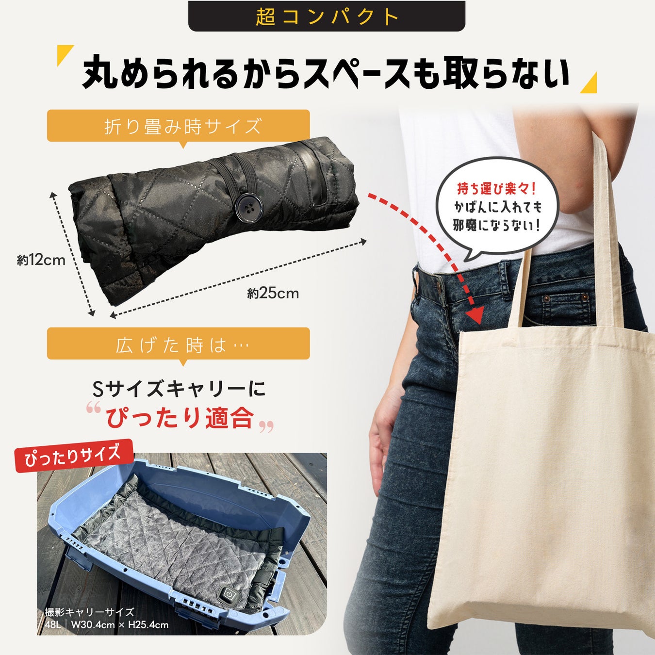 1.業界初!キャリーにピッタリの持ち運べるペット用ホットカーペット