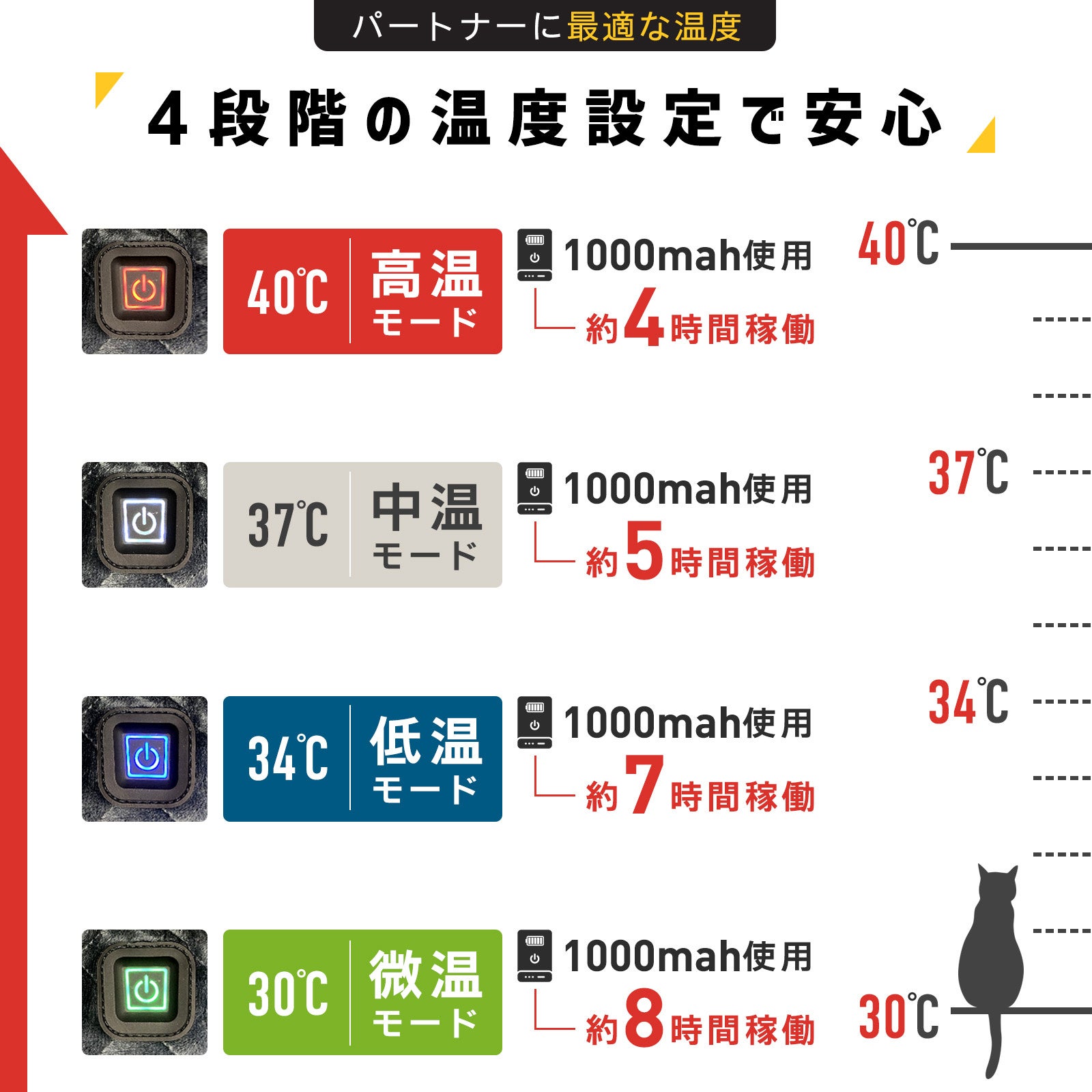 ・30℃ /34℃ /37℃ /40℃の4段階設定