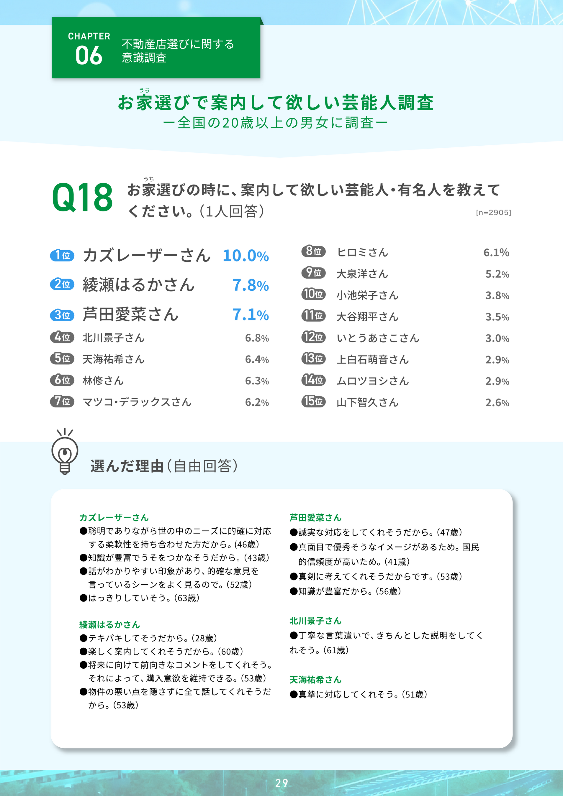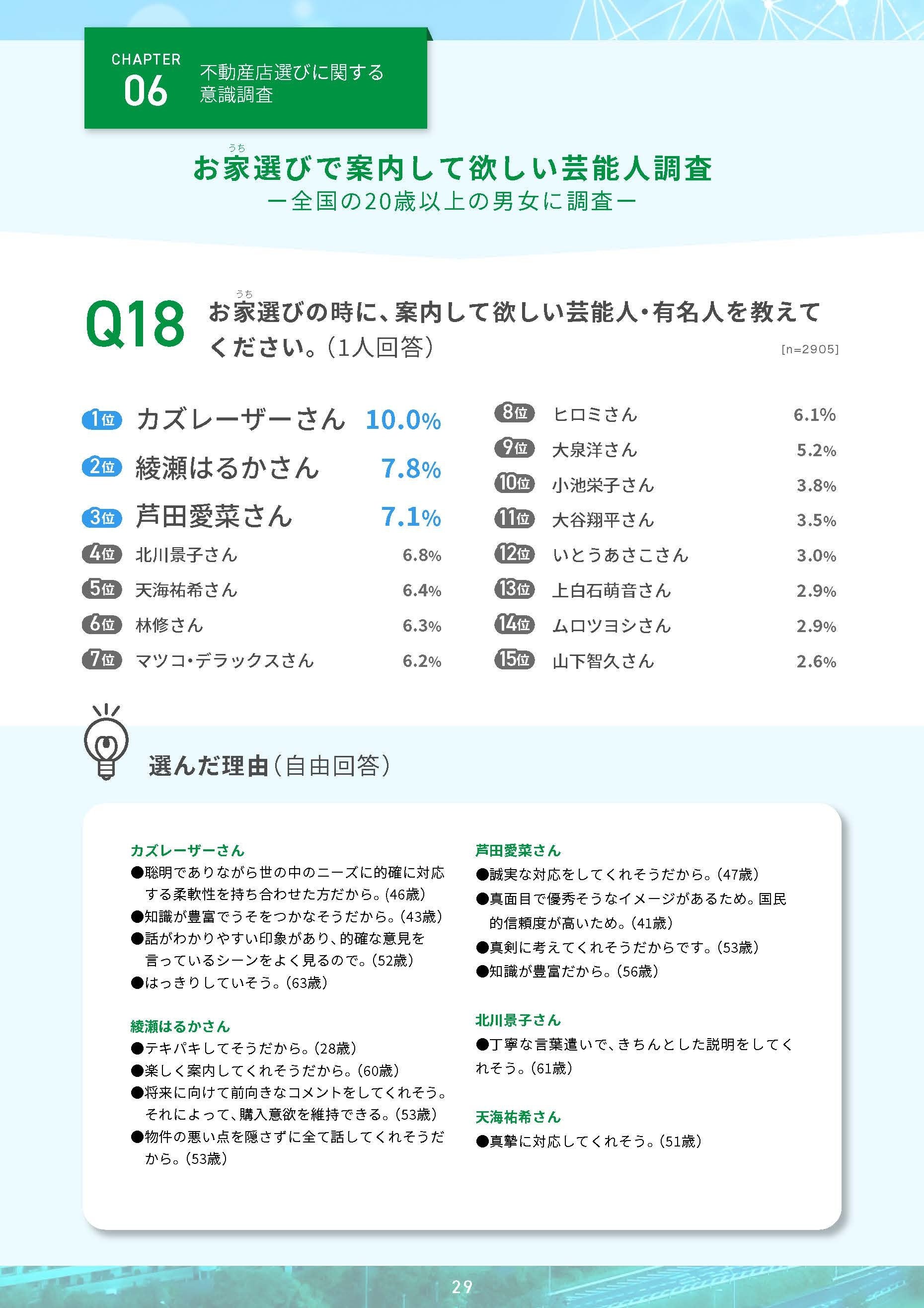 Q18. お家選びの時に、案内して欲しい芸能人・有名人を教えてください。(1人回答)(n=2905)