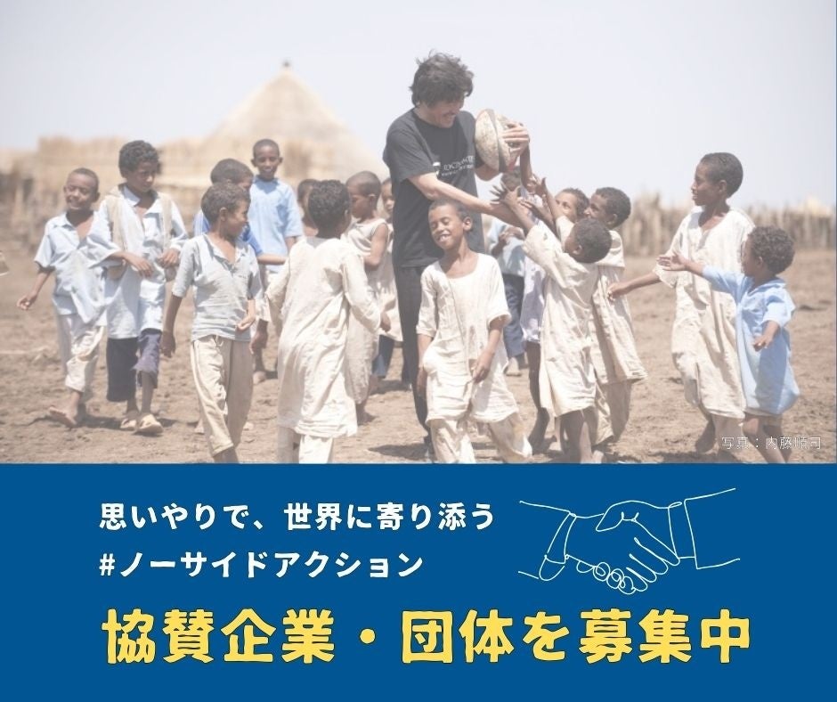●内容:「手と手を合わせた」シーンを撮影し、「#ノーサイドアクション」のハッシュタグをつけて投稿すると、1投稿50円がスーダンへの支援に。
