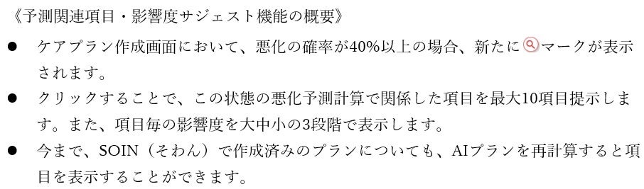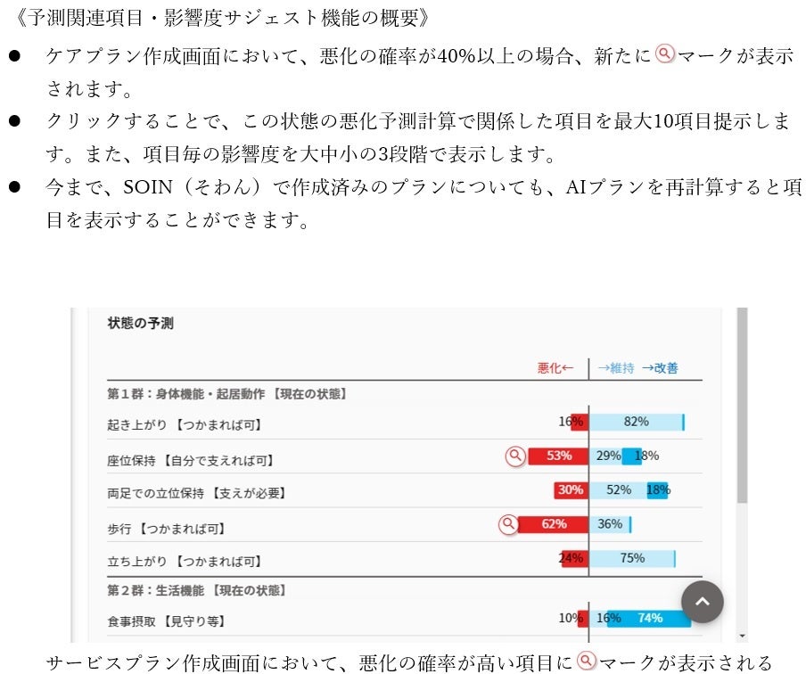 【介護×DX】自立支援のためのAIケアプラン作成支援システムSOIN(そわん)に予測関連項目・影響度サジェスト機能を追加