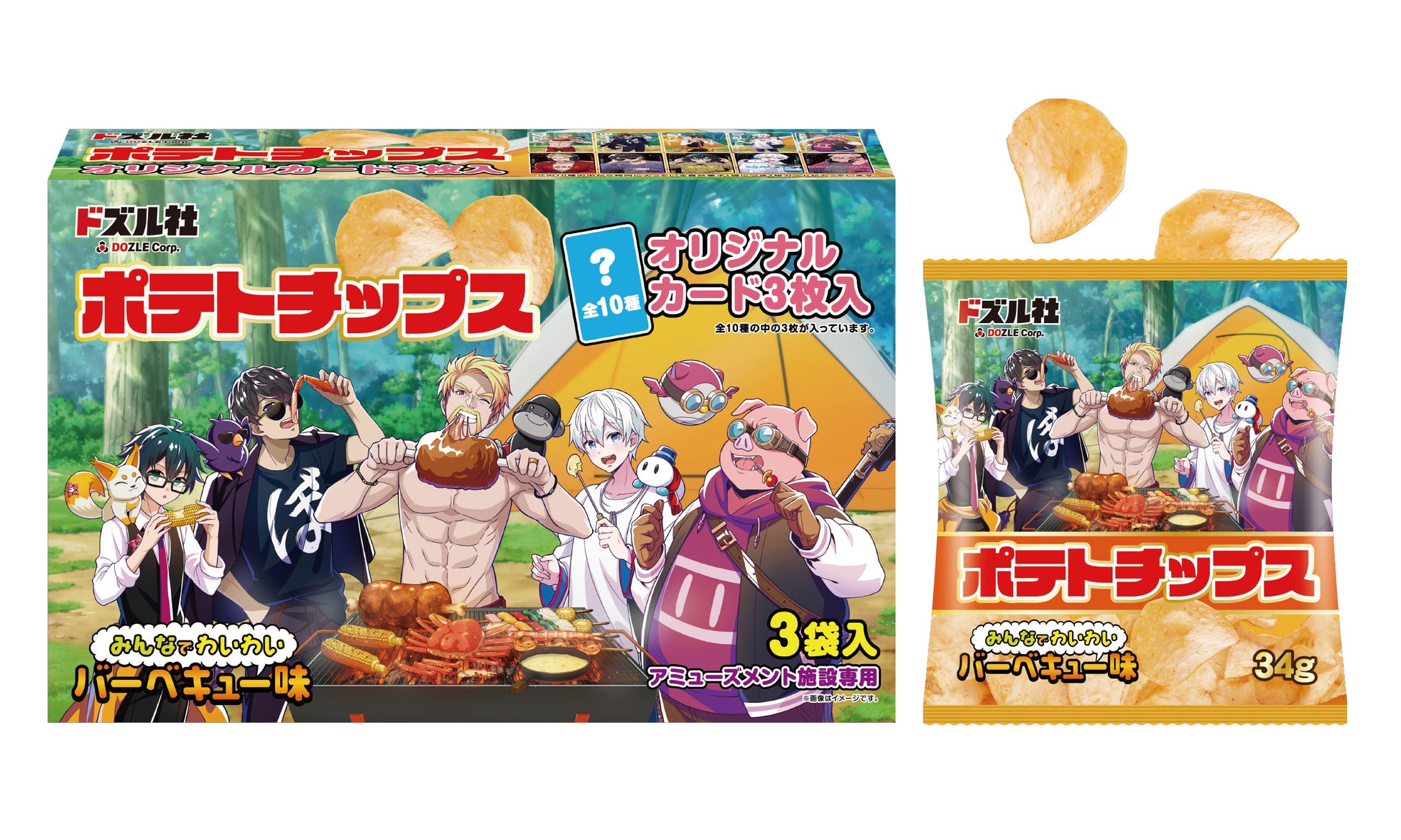 本コラボ商品は、ドズル社オリジナルデザインによるポテトチップス(バーベキュー味)が3袋と