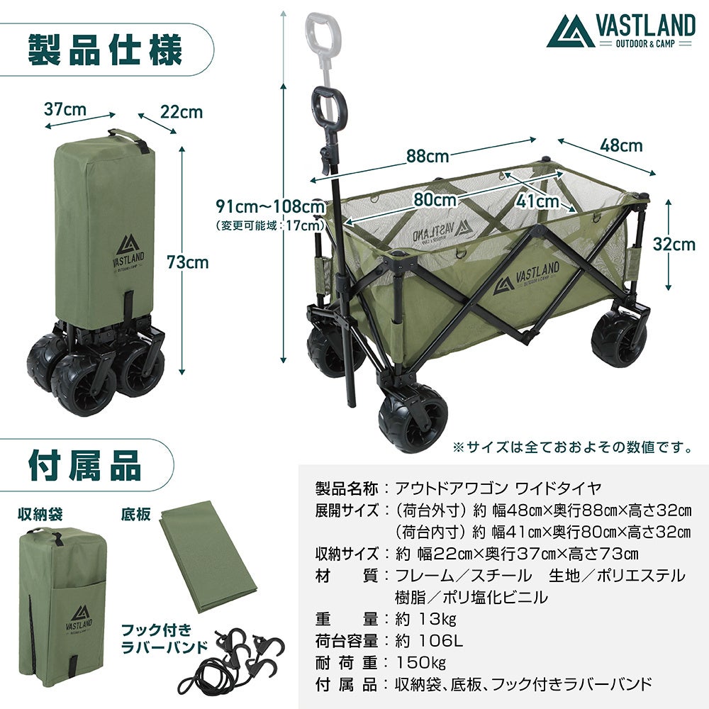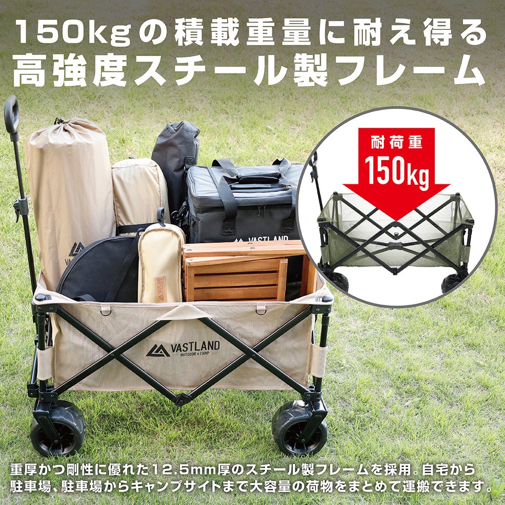 キャンプ・アウトドア用品ブランド「VASTLAND」、荷物の運搬を快適にする「アウトドアワゴン ワイドタイヤ」&「キャンプトートバッグ 160L」を2022年9月24日(土)に発売