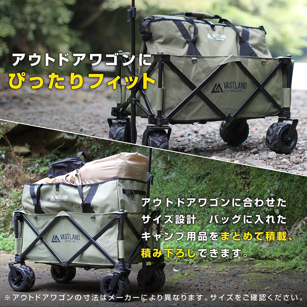 ~キャンプトートバッグ 160Lはアウトドアワゴンにピッタリ収まるサイズ設計。2つを組み合わせれば快適度はさらにアップ。~