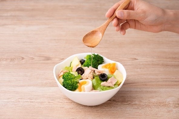 1日スプーン1杯を目安に、サラダやジュース、スープや味噌汁など、出来上がった料理に、そのままかけてご使用ください。