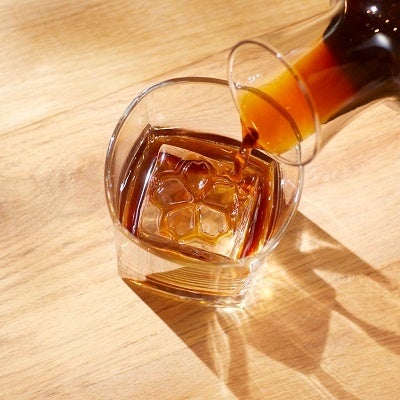 バーボンウイスキーの樽(バレル)の中で熟成させた(エイジド)コーヒー豆をコールド ブリューで抽出しました。コールド ブリュー コーヒーの芳醇な香りとウイスキーの香りが一体となった、贅沢な気分のコーヒー体験をお楽しみいただけます。桜の時期に合わせ、氷には、桜の刻印が押されます。