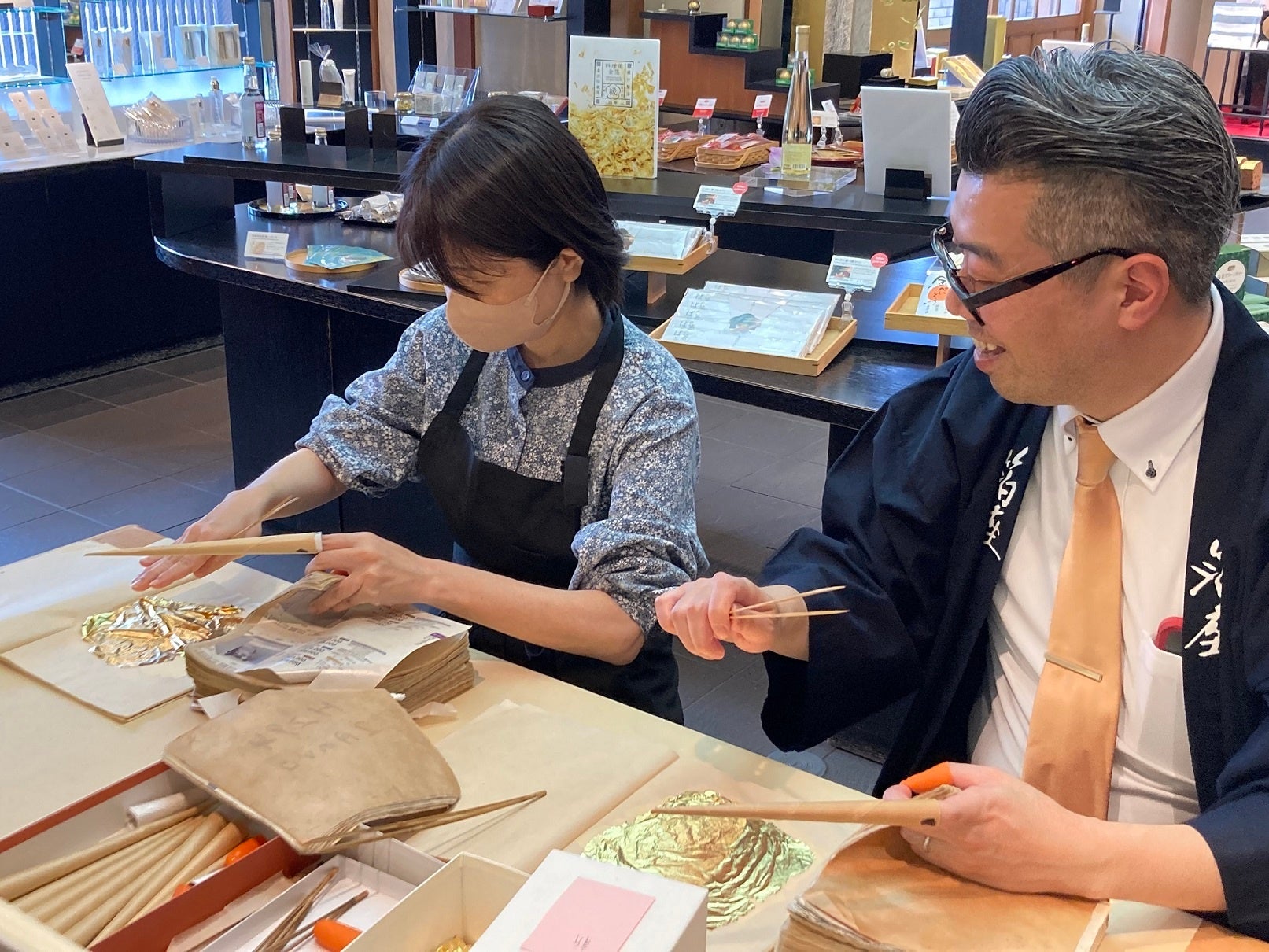 石川県金沢市の代表的な伝統工芸のひとつ、金箔。今や日本の金箔はすべて金沢産、国内生産100%を誇っています。また、金沢は観光地としても人気が高く国内外から多くの人々が訪れます。伝統工芸、それも昨今では製造工程や作り手(職人)、その技を育んだ文化などへの関心が高まっており、特に外国人旅行者はそうした製品の背景にある事柄に興味を示す傾向にあります。