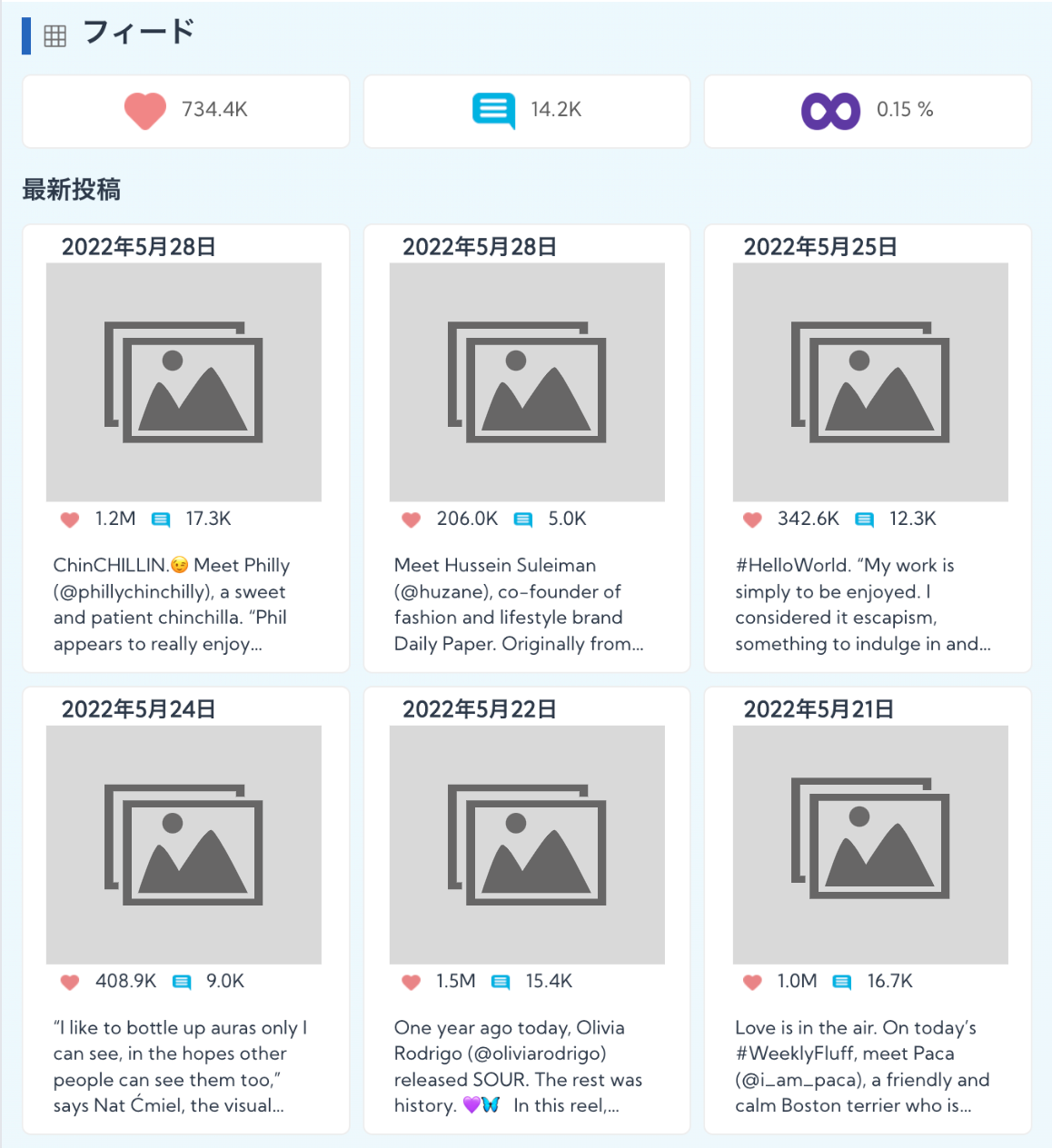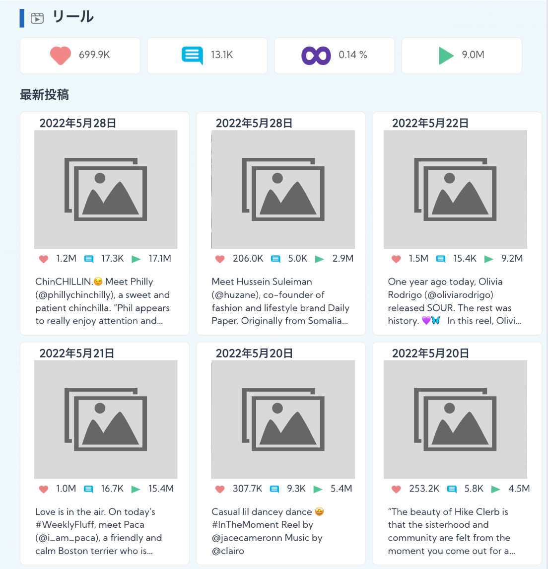 ■Instagramリール最新6投稿の表示および最新10投稿のデータ取得