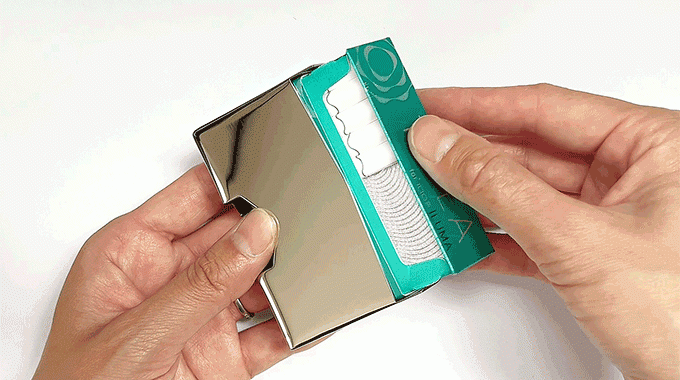 chromboxは美しいだけのケースではありません。機能面もしっかりデザインされています。ダイヤ状のホールを親指で軽くプッシュし、スムーズにタバコスティックを取り出すことが可能です。