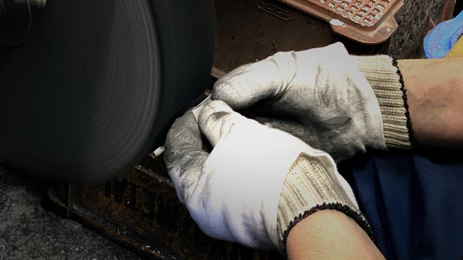 工程別に専用の研磨ロールを交換し、1つ1つ手作業で時間をかけて磨いていきます。職人の一才妥協の許されない研磨に対する想い。1つのミスも許されない研磨作業は、職人の技術力と集中力により成り立っています。