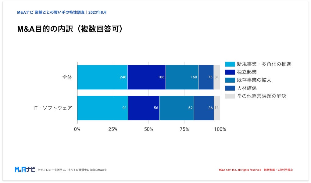 ・全体と比較して、新規事業・多角化の推進目的の割合が高い