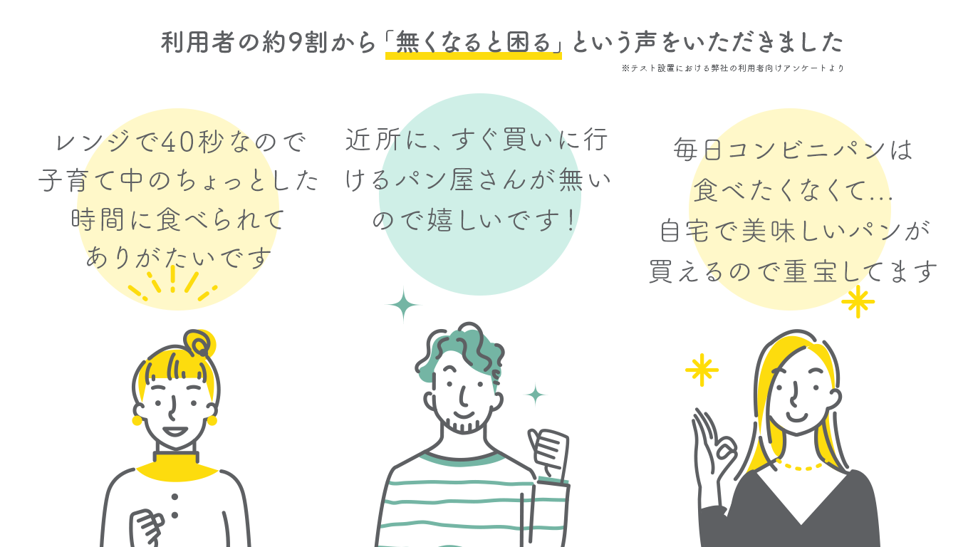 事前に行ったテスト設置では、多くのユーザーの方の生活に取り入れて頂き、約9割の方から「無くなると困る」とのご評価を頂きました。