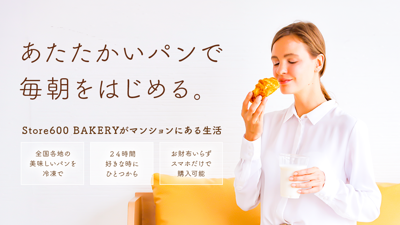 「コンビニやスーパーのパンではない、パン屋さんのパンを購入することは、忙しい生活の中では意外と大変」「通販では美味しいパンも売っているけれども、一度にたくさん購入すると冷凍庫を圧迫してしまう」…こうしたユーザー様のお声にお応えして、「Store600 BAKERY」では、24時間好きな時に1個から美味しいパンを買っていただける体験を、マンション共用部でお届けしてまいります。