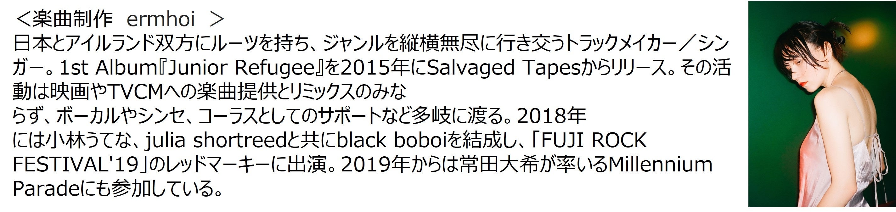 日本とアイルランド双方にルーツを持ち、ジャンルを縦横無尽に行き交うトラックメイカー/シンガー。1st Album『Junior Refugee』を2015年にSalvaged Tapesからリリース。その活動は映画やTVCMへの楽曲提供とリミックスのみならず、ボーカルやシンセ、コーラスとしてのサポートなど多岐に渡る。2018年には小林うてな、julia shortreedと共にblack boboiを結成し、「FUJI ROCK FESTIVAL'19」のレッドマーキーに出演。2019年からは常田大希が率いるMillennium Paradeにも参加している。