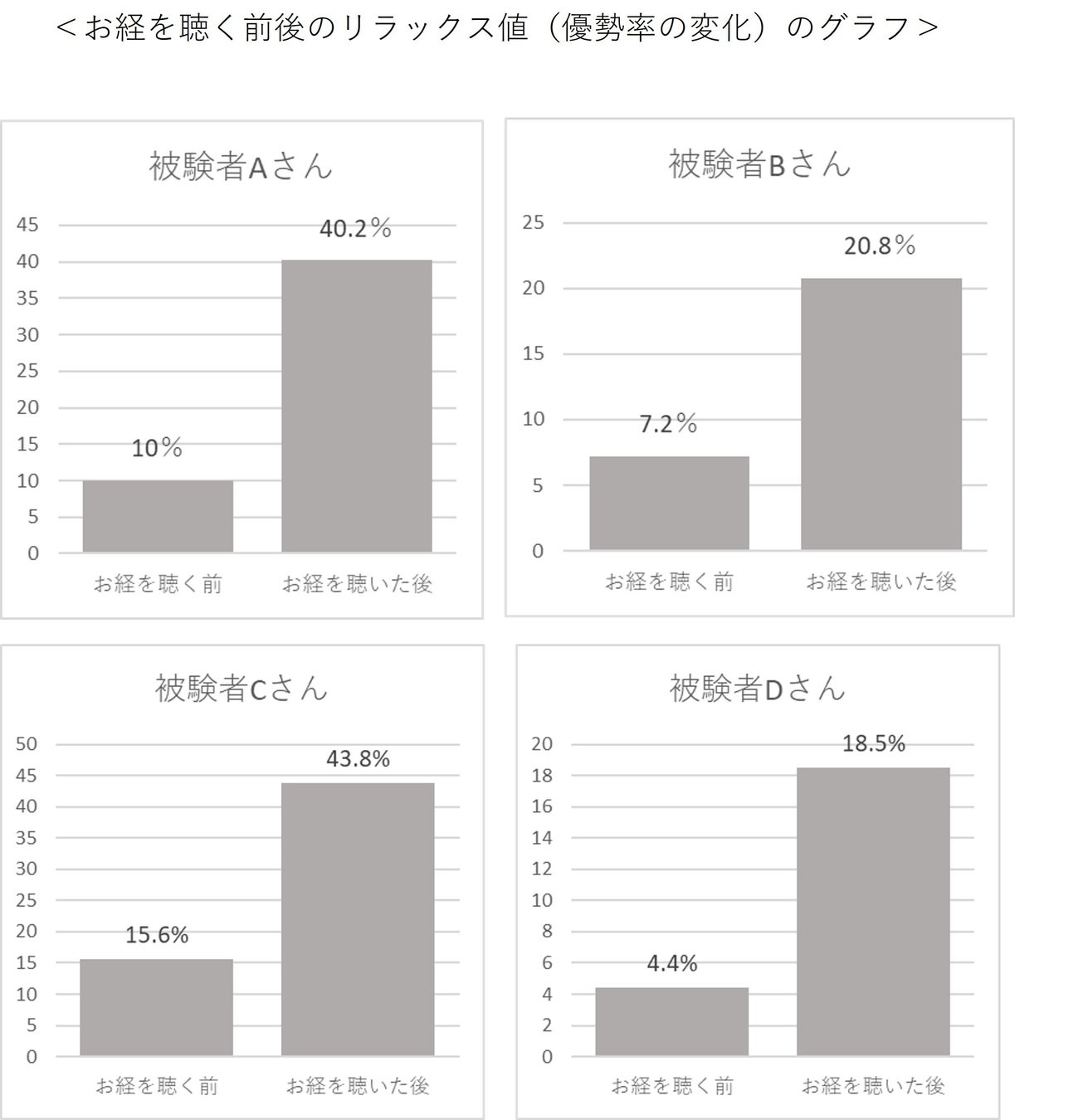 このような実験結果からも、昔から伝わる日本人の叡智である、お経を生活に取り入れることは、現代人にとっても有効なリラクセーション手法になると言えます。」