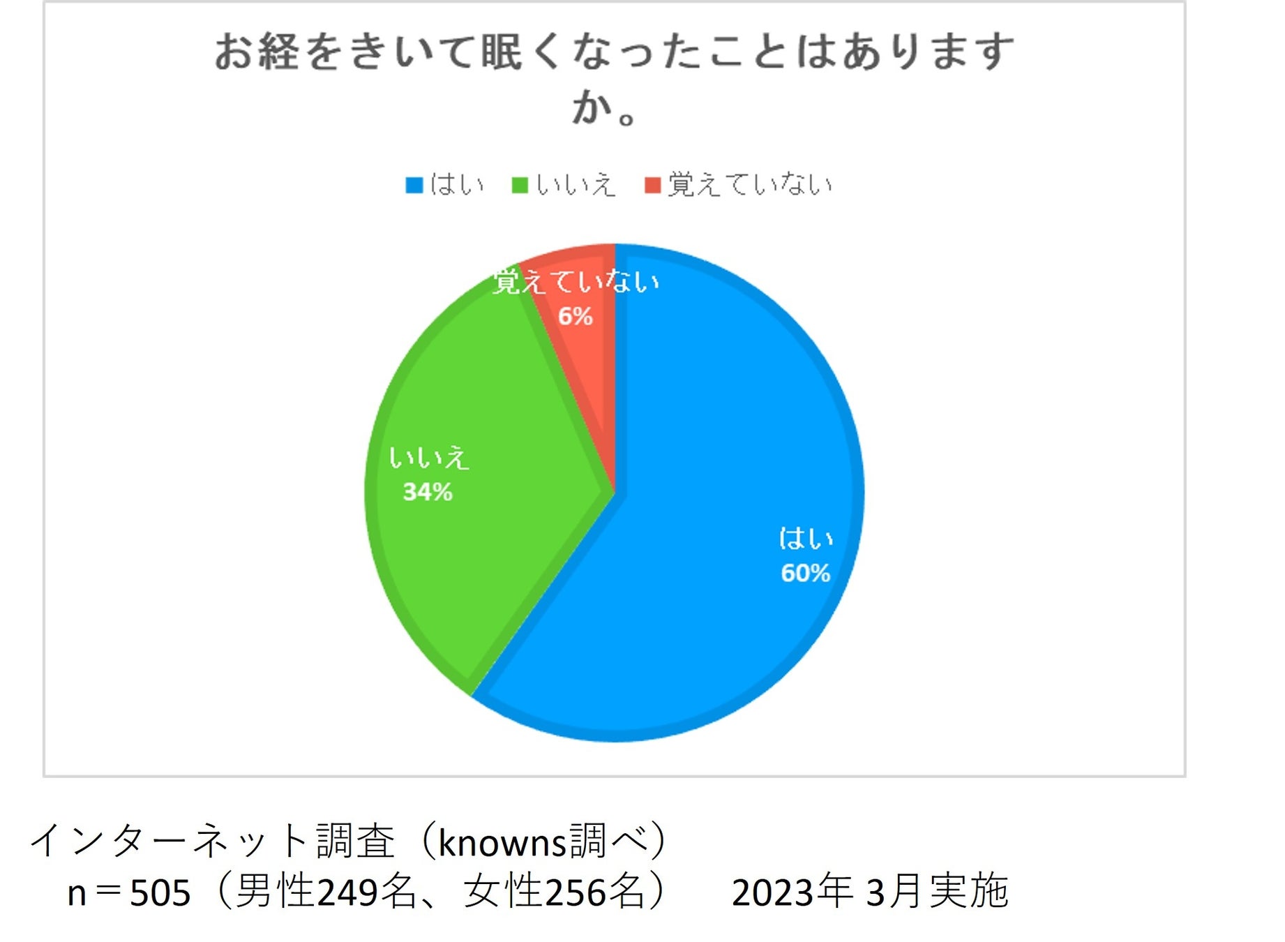 実際に、「お経を聴いて眠くなったことはあるか?」と一般の人500人に調査した結果でも、60%が「眠くなったことがある」と回答しました。