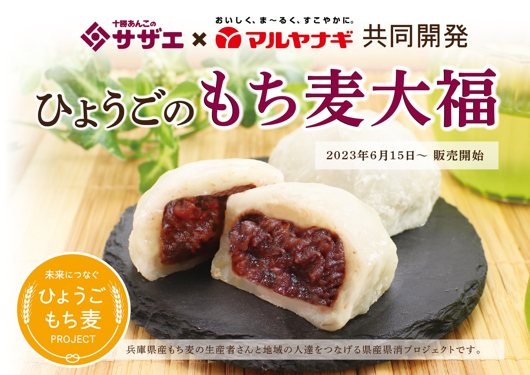 マルヤナギ×十勝あんこのサザエ “ひょうごのもち麦大福”を共同開発 6/15~県内3店舗で数量限定販売
