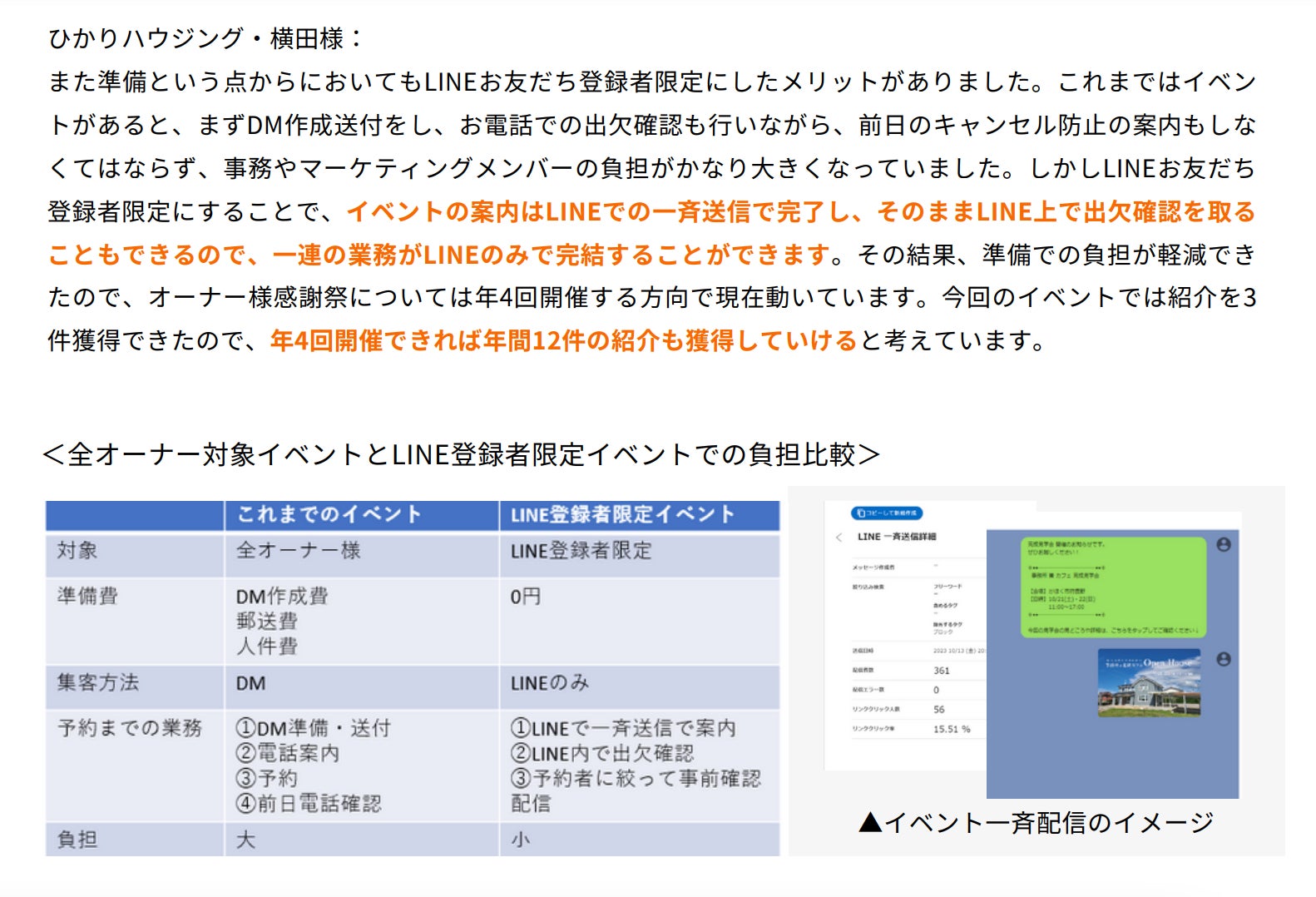 ・成功事例:LINE友だち登録者限定のオーナーイベント