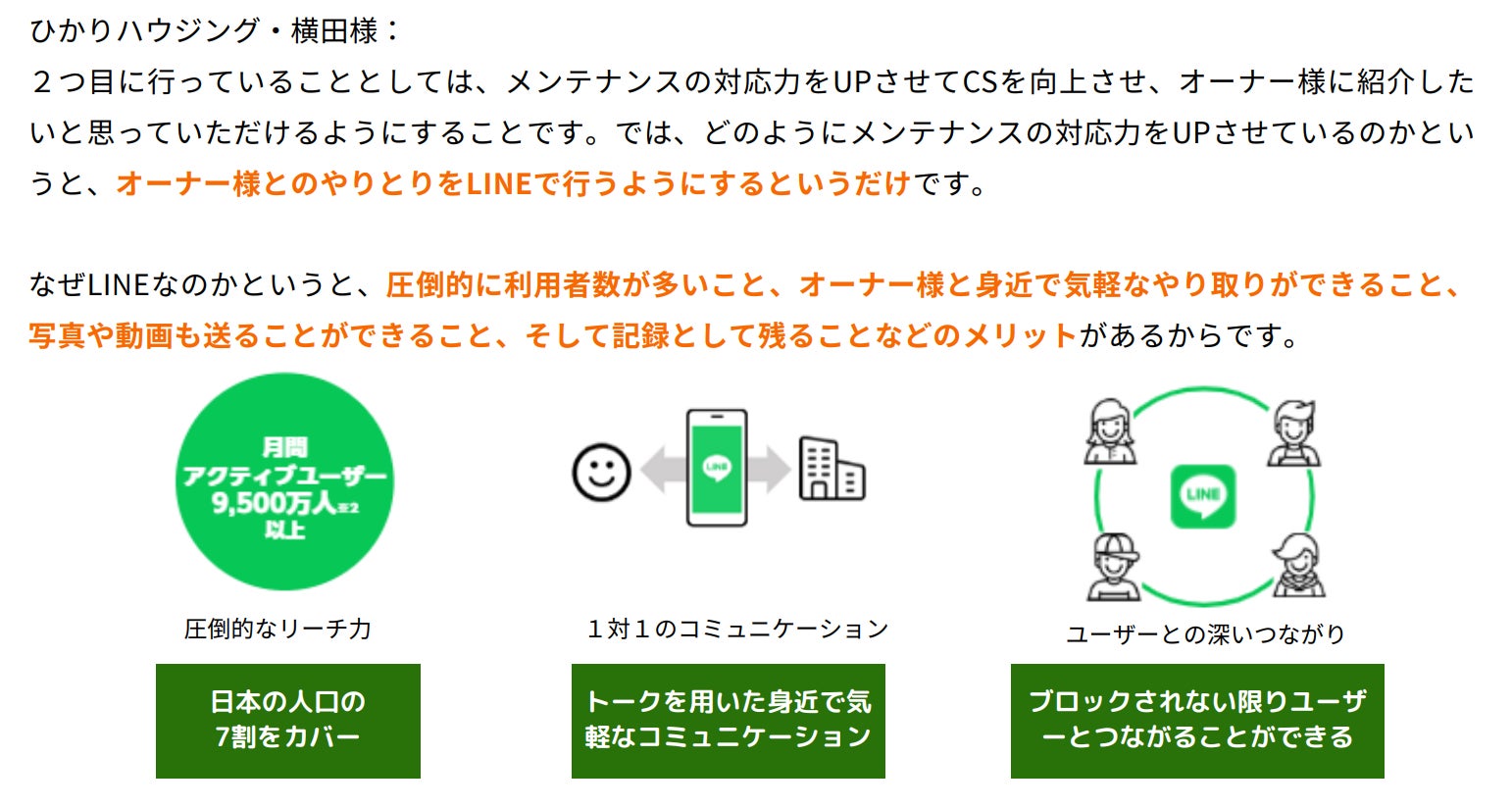 ギバーテイクオール株式会社(本社:東京都港区、代表取締役CEO 河野清博、以下当社)は、住宅・不動産業界向けLINE運用ツール『来店プラス』において、提携先のひかりハウジング株式会社様のLINE活用事例をレポートとして配信することをお知らせいたします。