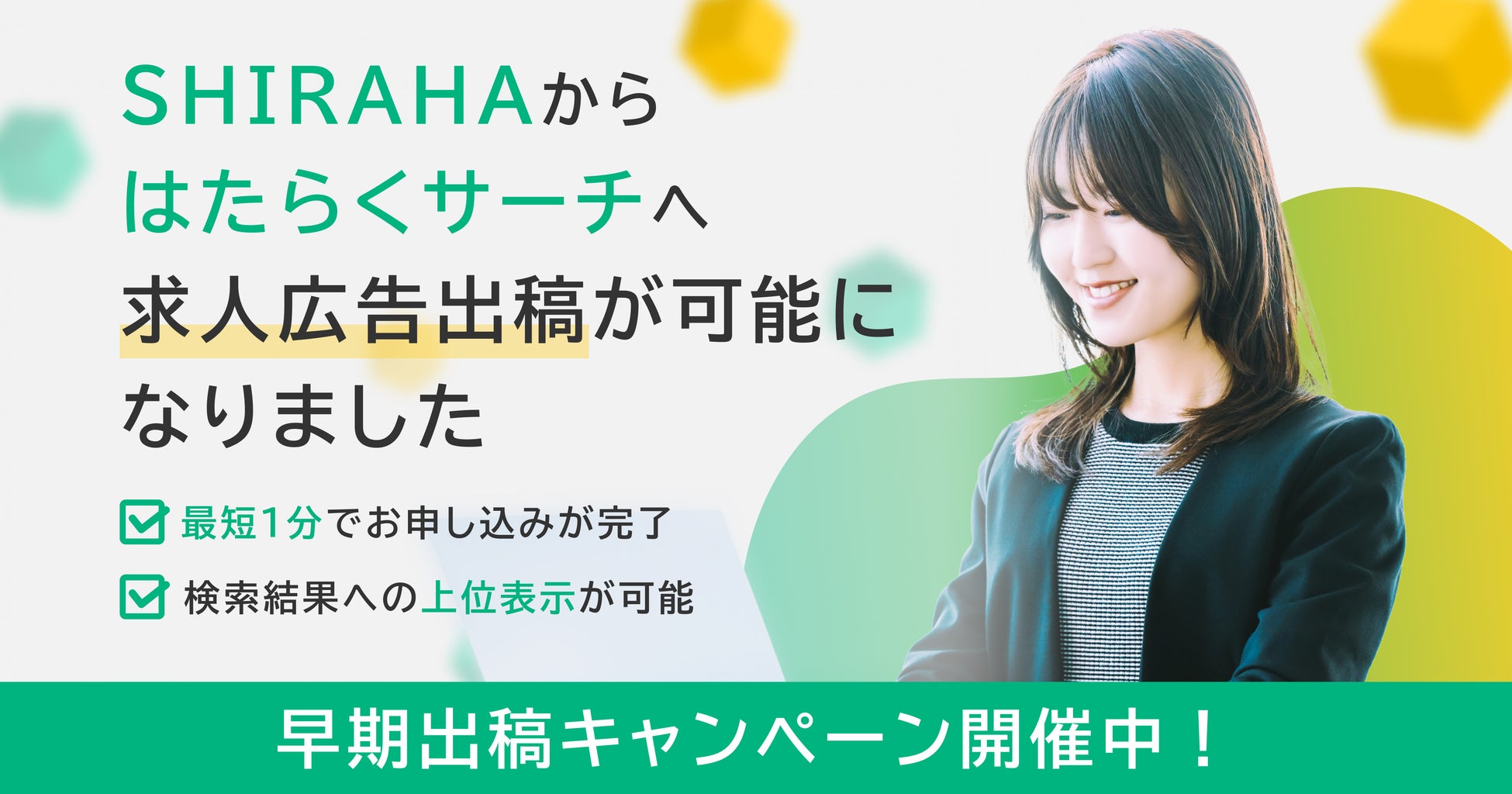 採用サイト制作システム『SHIRAHA』、ハローワーク求人検索サイト『はたらくサーチ』と連携を開始