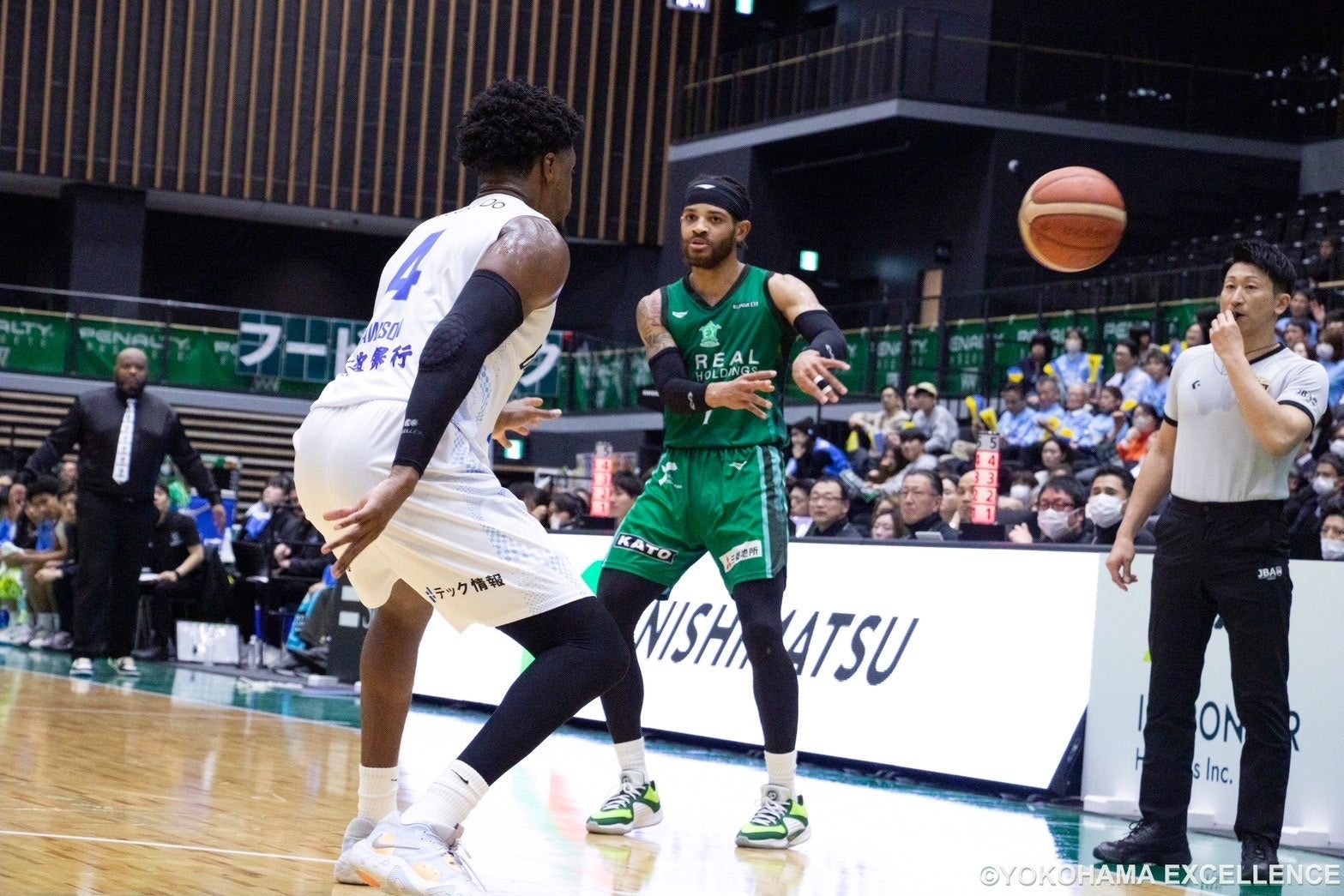 後半はそこからさらに守備に磨きがかかり、「#1 トレイ・ボイドIII」の3Pシュートなどで着実に得点を積み重ねる中で徳島に連続得点は許さずこの日の各Qでは最少となる10失点に抑え、56-36で3Qを終えます。