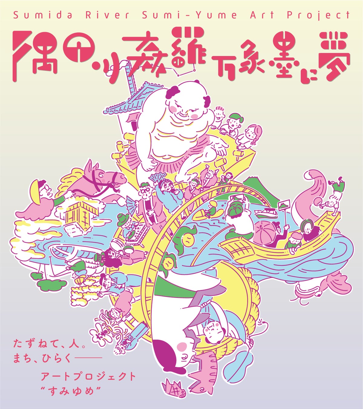 「隅田川 森羅万象 墨に夢」(通称:すみゆめ)は、すみだ北斎美術館の開設を機に 2016 年から始まったアートプロジェクトです。葛飾北斎が 90 年の生涯を過ごした墨田区及び隅田川流域で、墨で描いた小さな夢をさまざまな人たちの手で色付けしていくように、芸術文化に限らず森羅万象あらゆる表現を行っている人たちがつながり、この地を賑やかに彩っていくことをめざしています。開催期間中は、まちなかや隅田川を舞台に主催企画やプロジェクト企画を行うとともに、すみゆめ参加者や関心のある人たちが集う「寄合」(毎月開催)で相互に学び、交流する場を創出していきます。またメイン期間の外にも、すみゆめの趣旨に賛同する企画を「すみゆめネットワーク企画」として広報連携するなど、一年を通して活動しています。