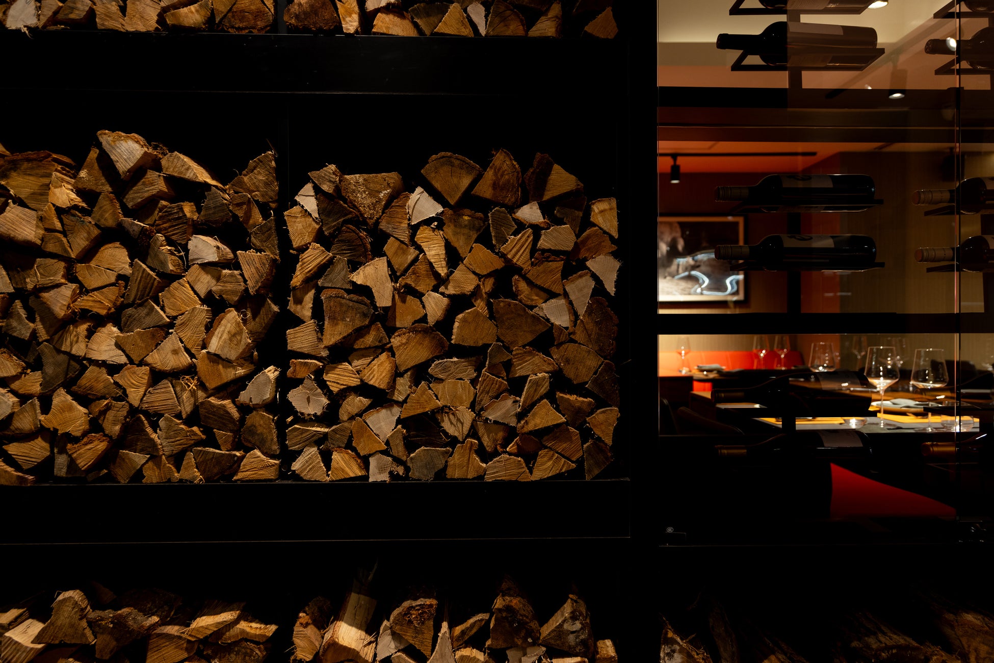 薪の熾火は、炭と比較し火力のコントロールが難しいですが、素材に対し熱量がふんわりと面で当たるので、表面がさくっと軽く焼け、中は硬くならず、水分が抜けないので肉汁が口にふわっと広がります。当店の薪は、火持ちがよく熱量高めなナラの木を使用しております。