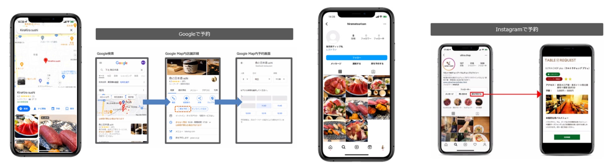Google、Instagramに「席予約ボタン」を設置し、予約経路を拡充できます。