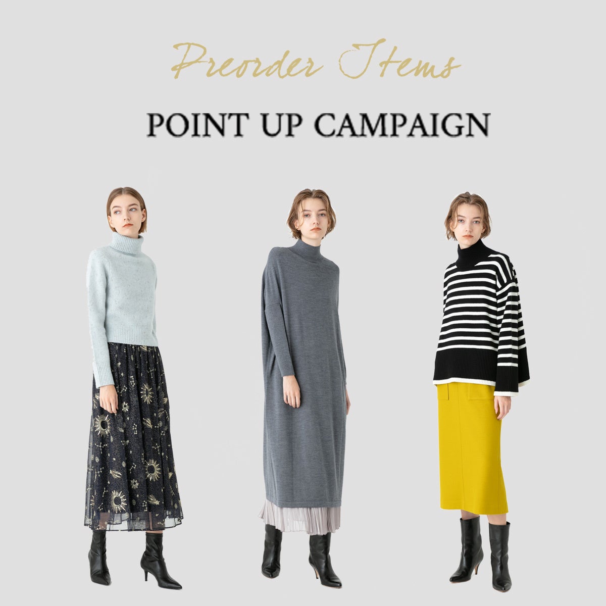 allureville ONLINE SHOPにて、期間中に予約商品をご注文いただきますと、通常のポイント付与率に+3%アップしてポイントをプレゼントいたします。人気アイテムの追加生産分や通年活躍する小物など、一足先にチェックしてみてください。