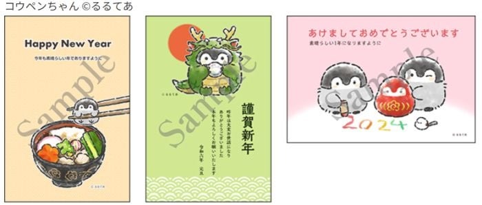 「筆ぐるめストア」で対象製品を購入すると、イラストレーター「るるてあ」さんのコウペンちゃん特製年賀状テンプレート3点を入手することができます!